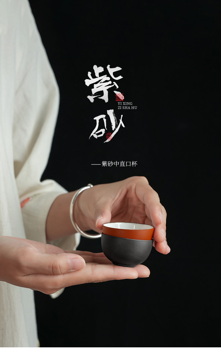 【茶杯/品茗杯】特价 紫砂中直口杯(红.黑两色)小客杯 岩茶单杯一口杯