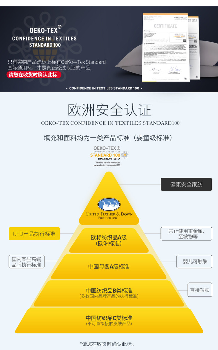 UNITED FEATHER & DOWN美国羽绒枕护颈椎枕75鹅绒枕