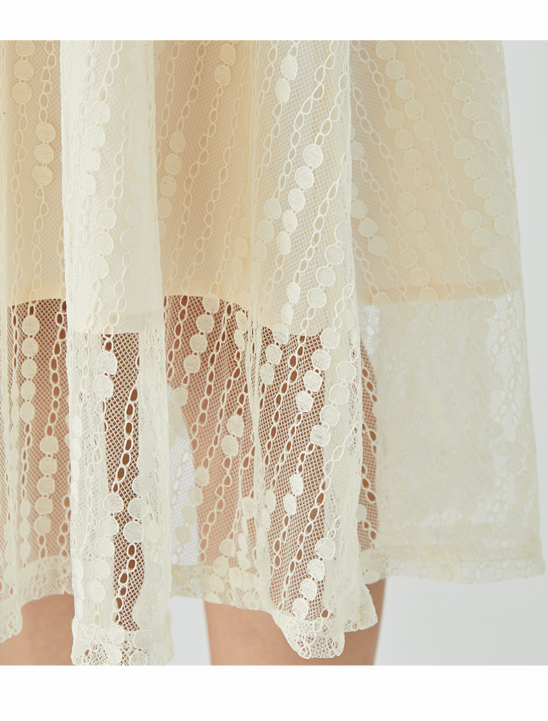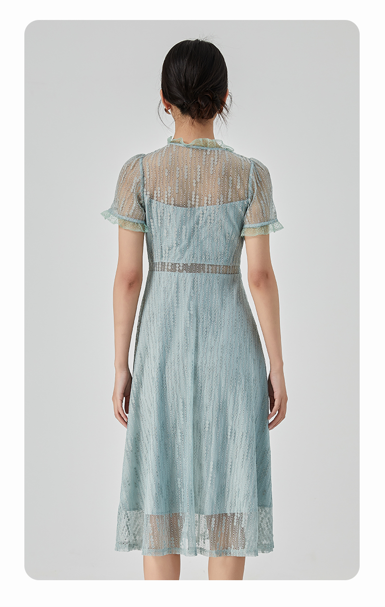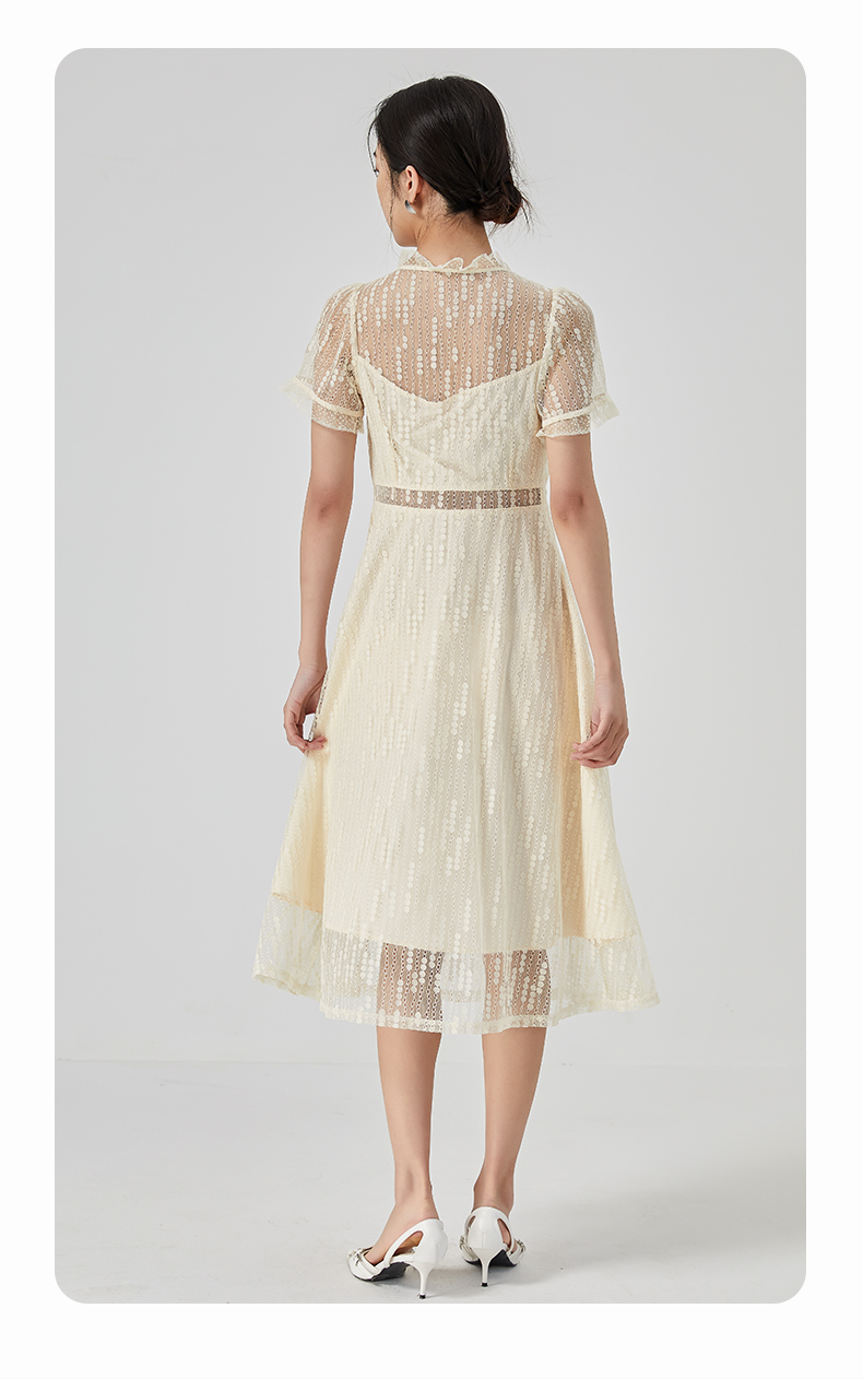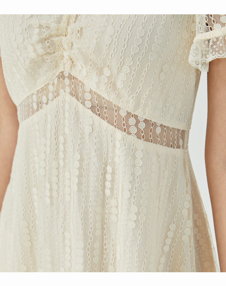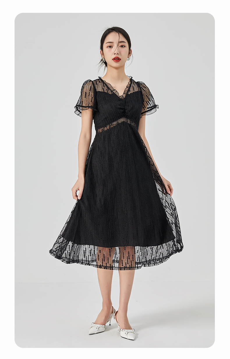 oldcolour2023夏季新款气质V领蕾丝拼接中长款连衣裙女GN21101732