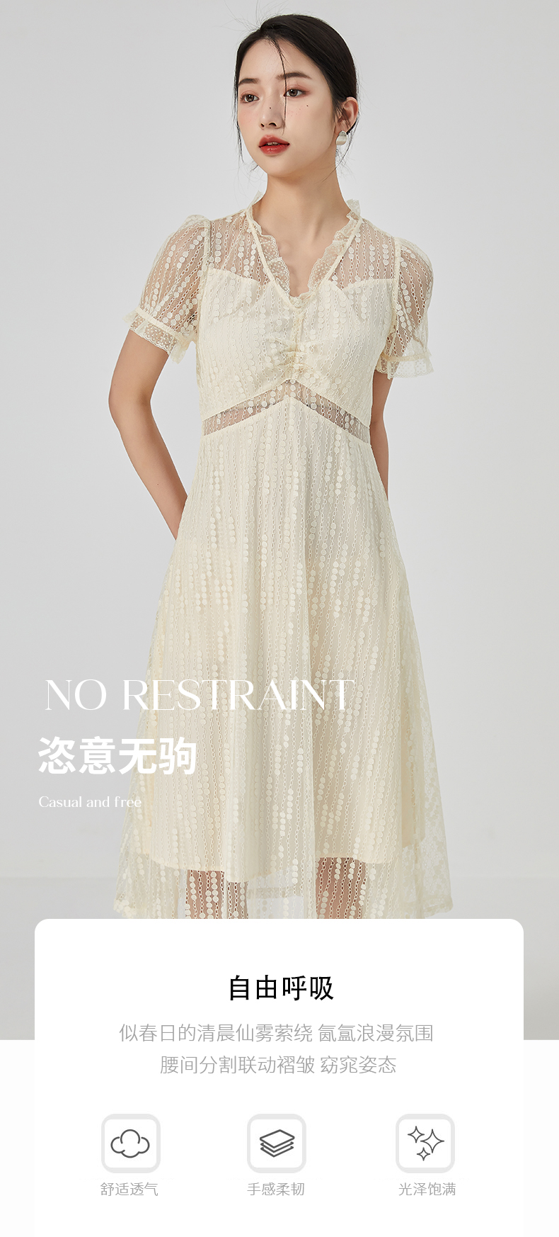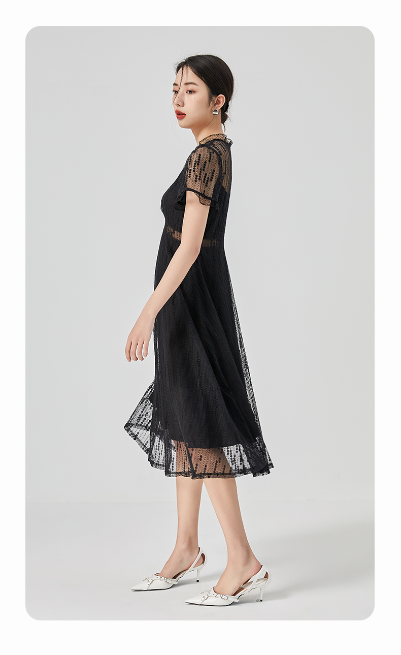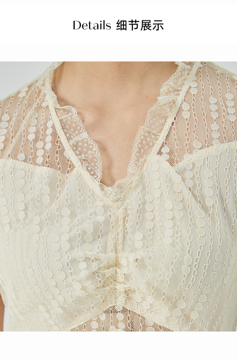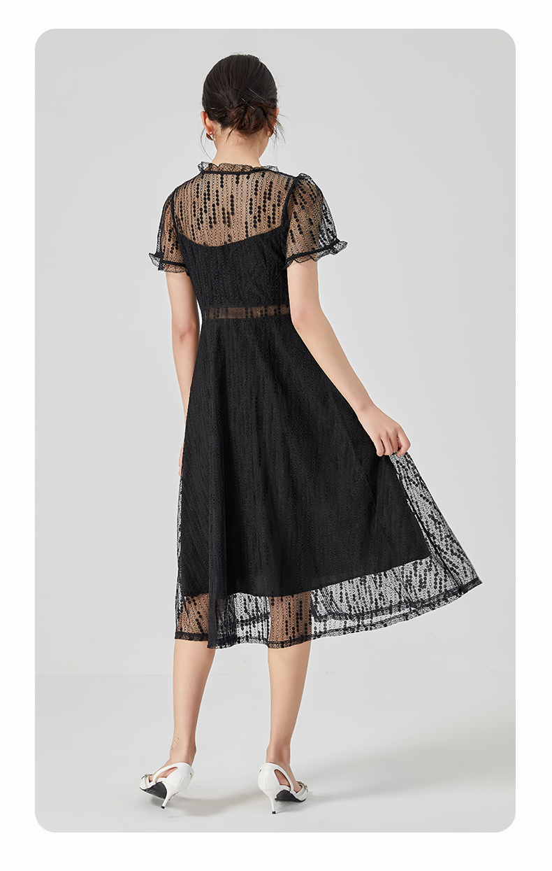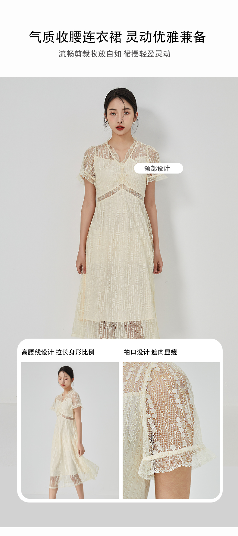 oldcolour2023夏季新款气质V领蕾丝拼接中长款连衣裙女GN21101732