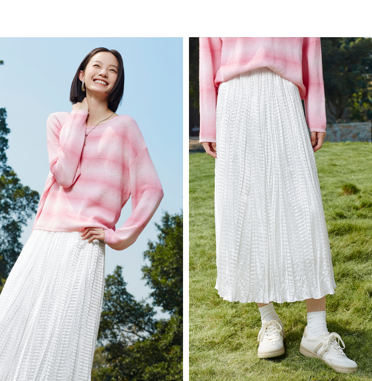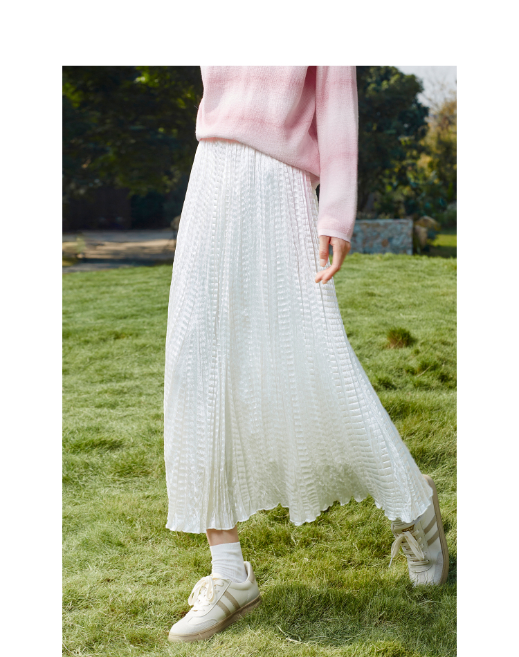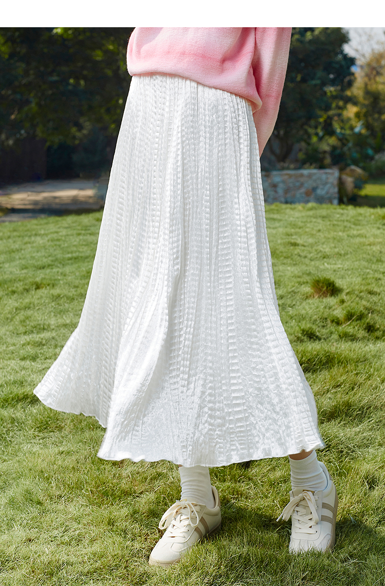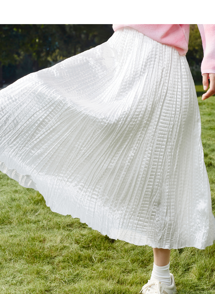 【百图lulu定制】【月光裙】白色飘逸仙气半身裙 高腰大摆皱褶A字裙
