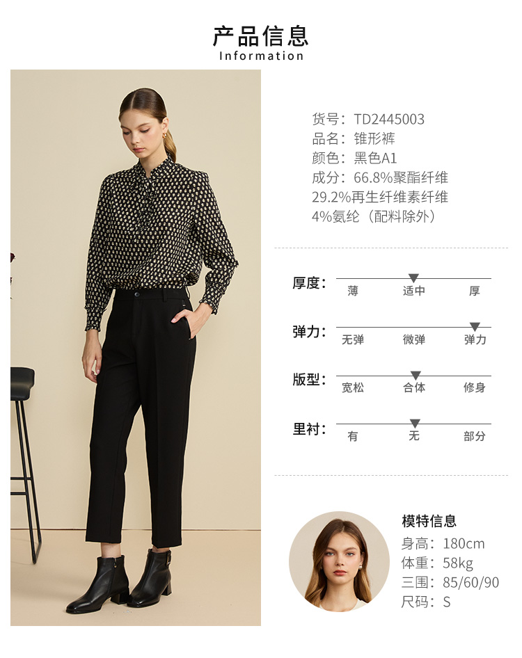 VIVIAN LIU薇薇安刘TD2445003初秋女装新款时尚梭织兜口装饰锥裤