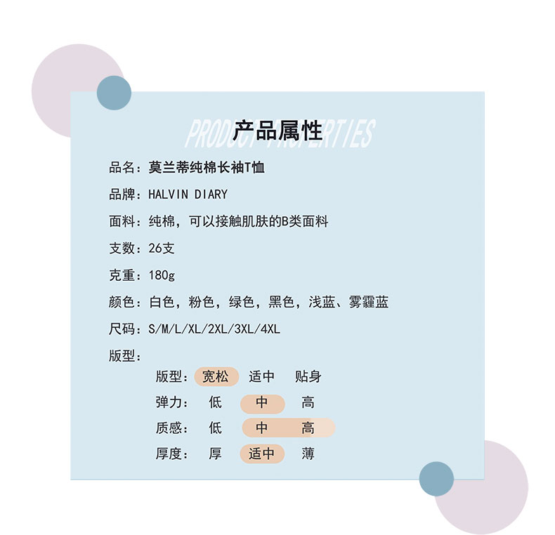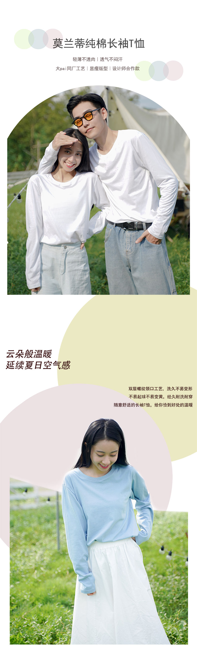 (因疫情原因,拍下需要4.5号发货)【优衣库代工厂 入秋必备的纯色T恤】HALVIN DIARY纯棉长袖T恤 设计师联合打造 6大莫兰蒂色系 纯正新疆棉