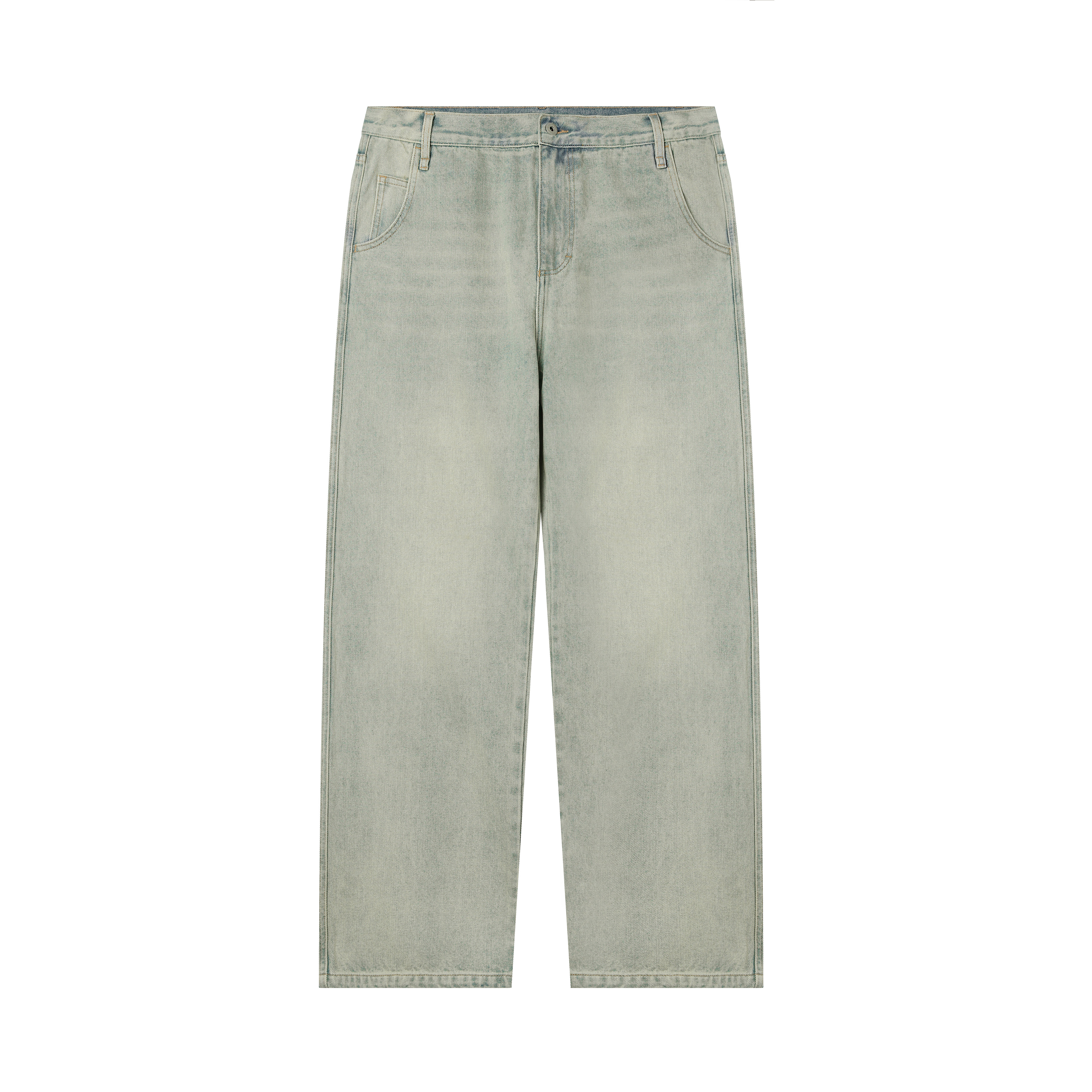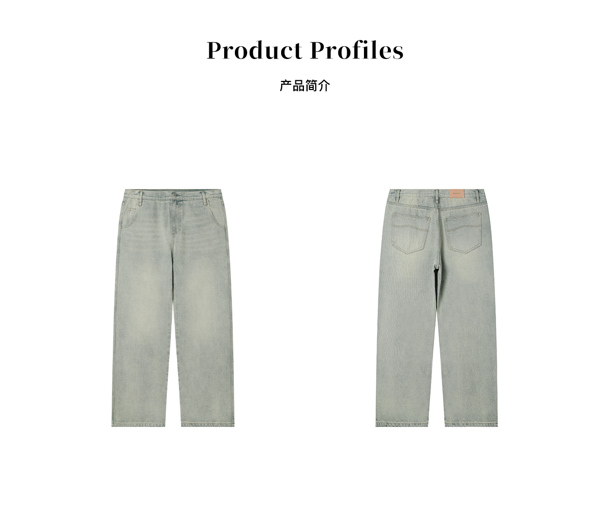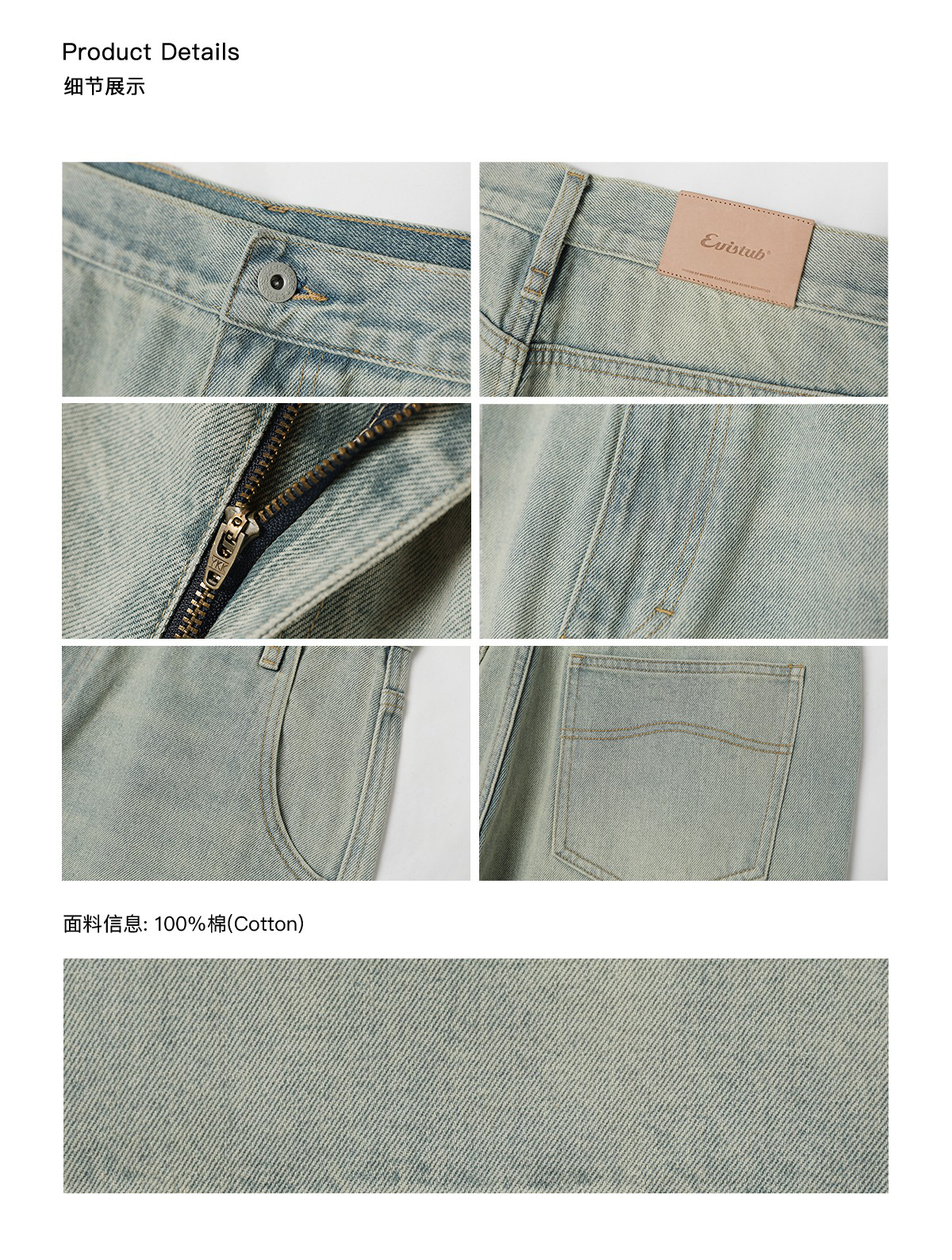 EviStub/E-4CCK150/13OZ丹宁套色复古水洗蓝宽松直筒微锥百搭牛仔长裤