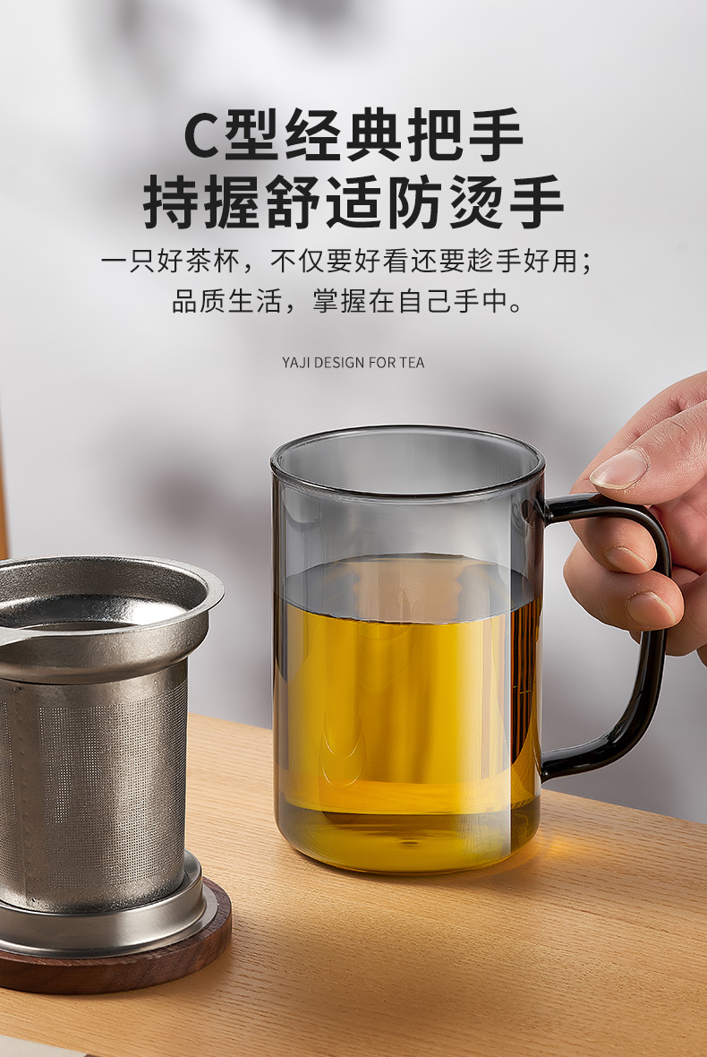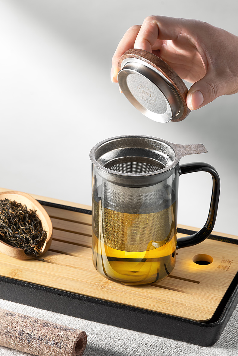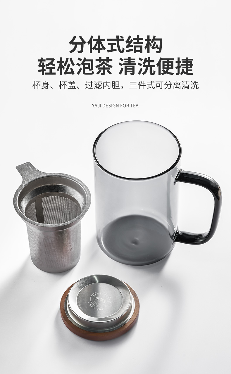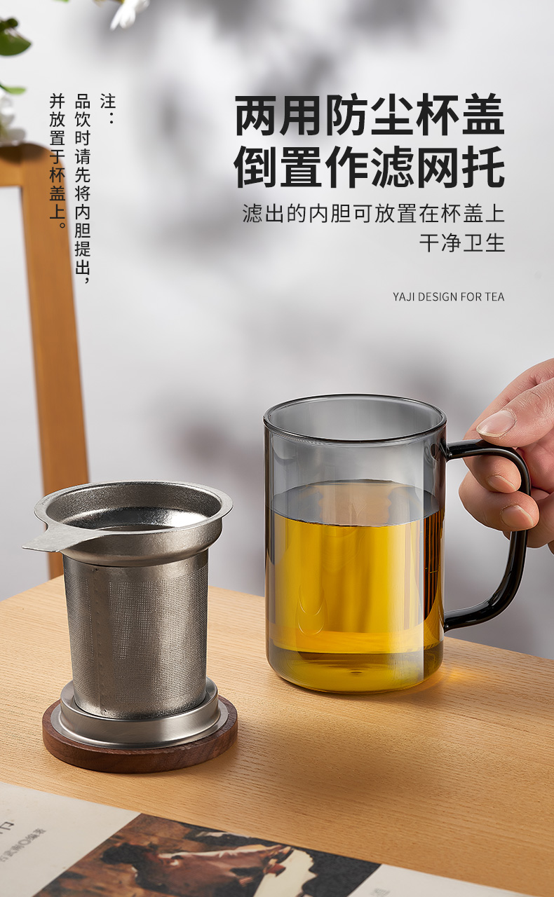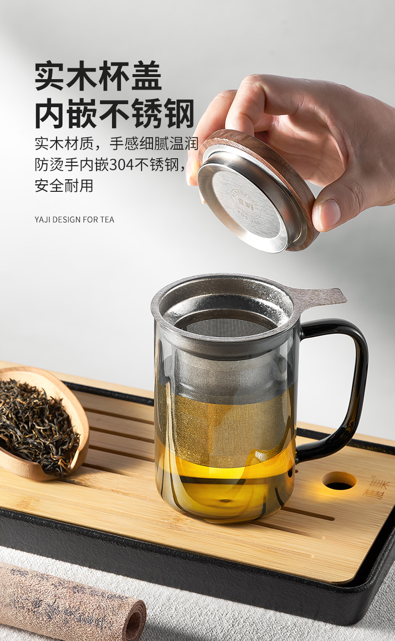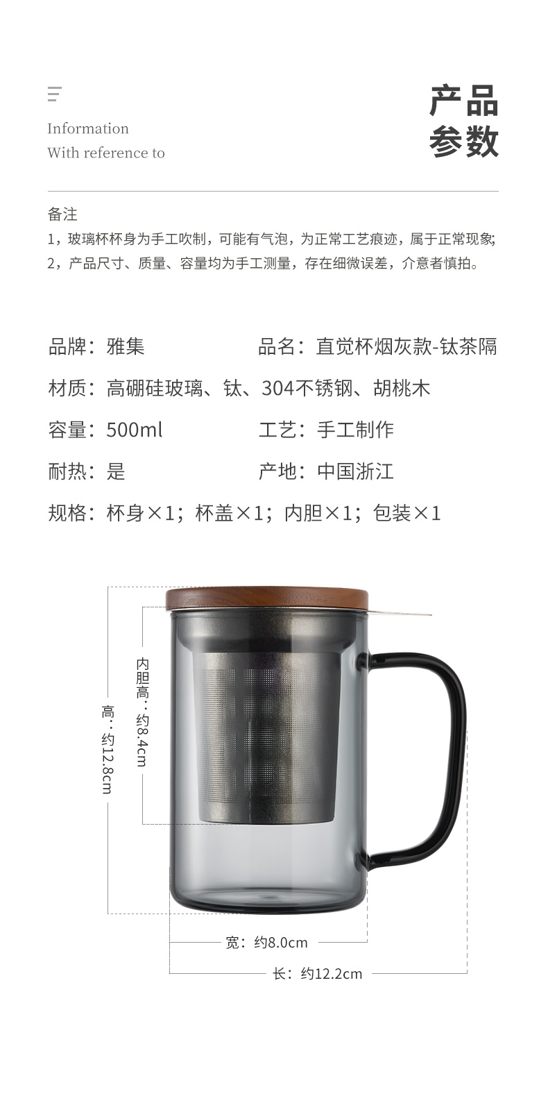 雅集玻璃杯烟灰直觉杯500ml(钛茶隔-木盖款)