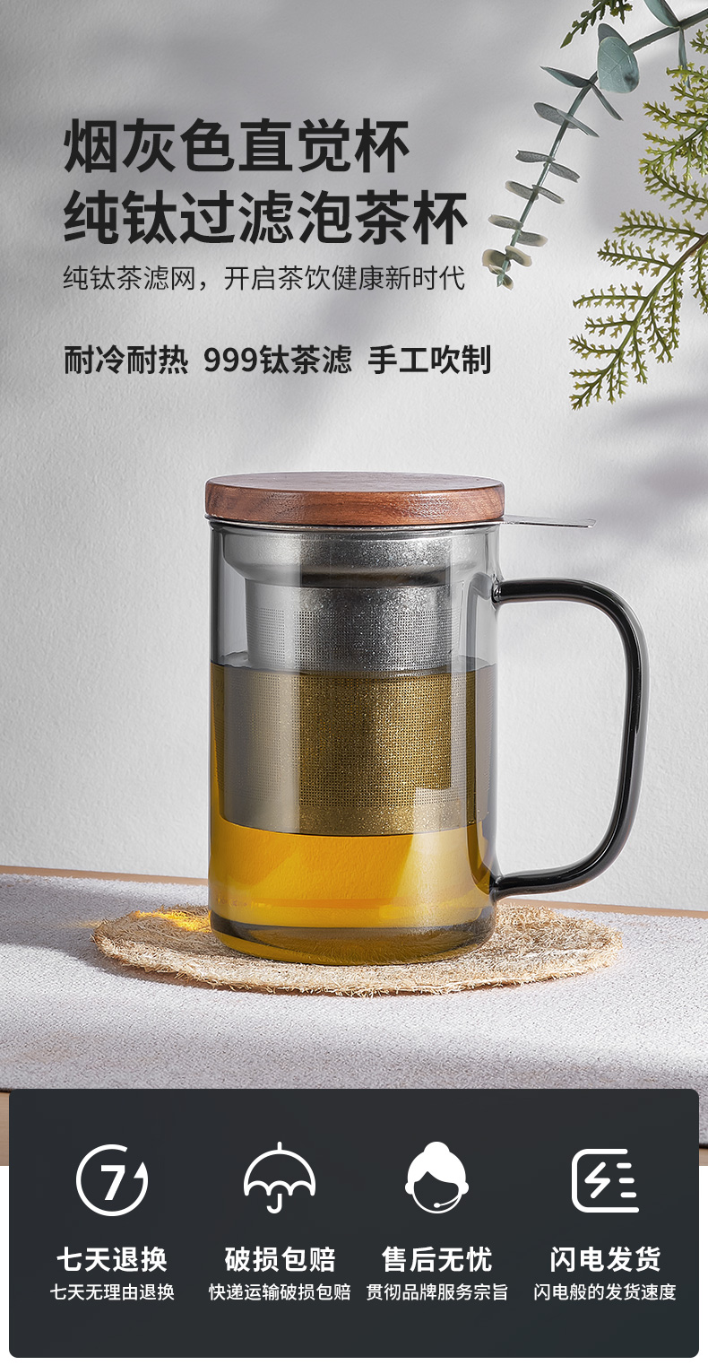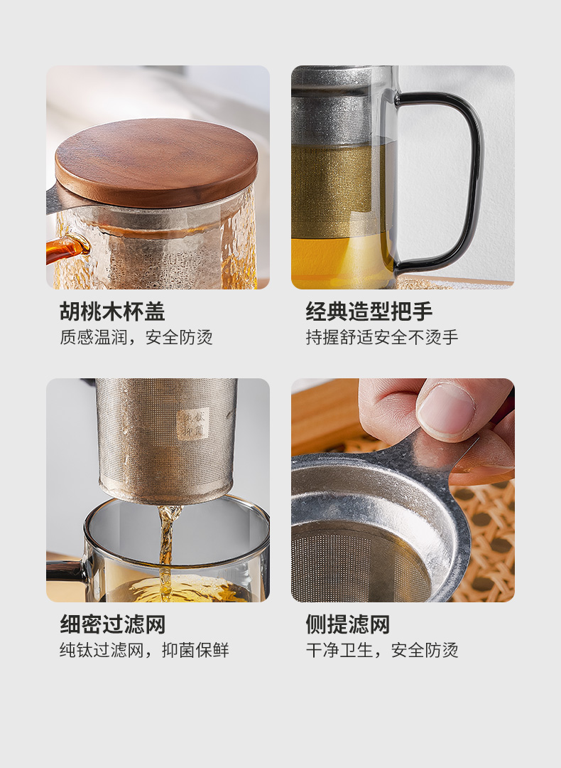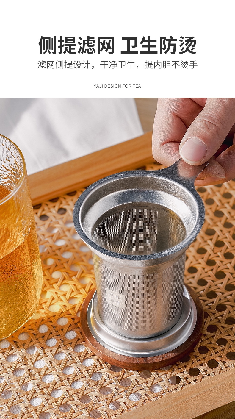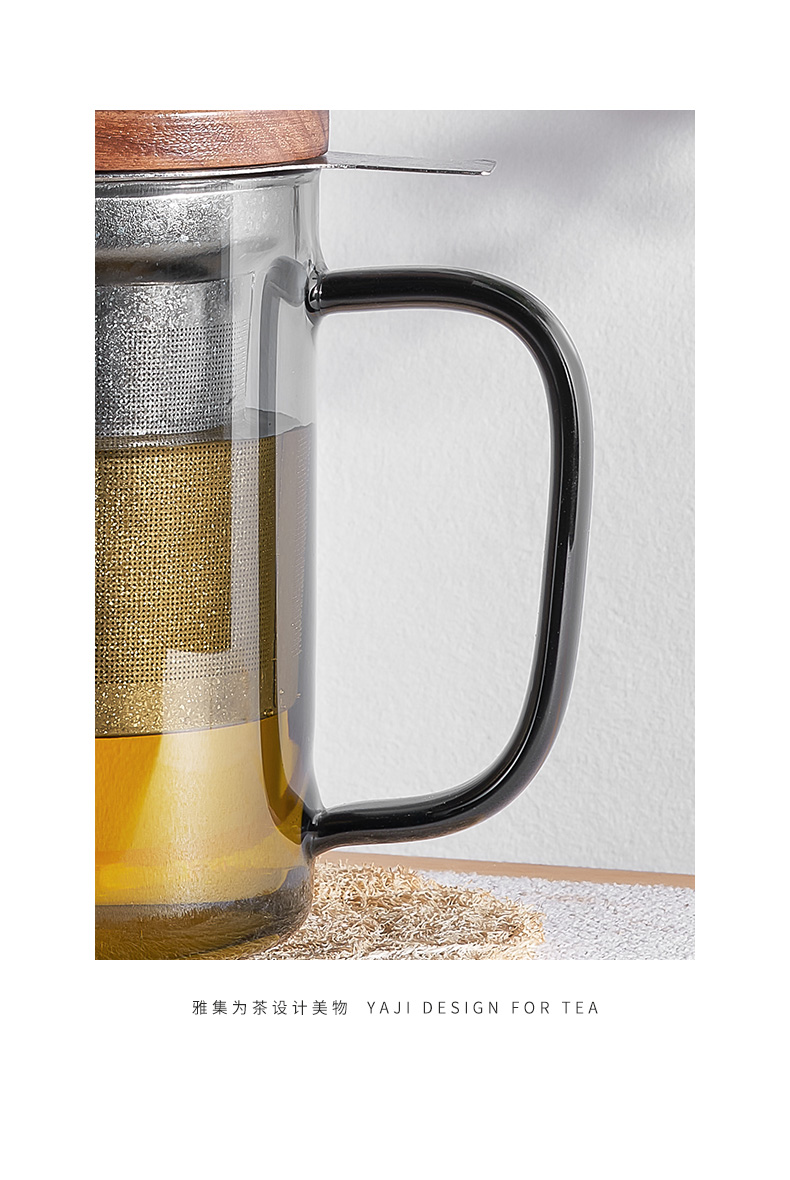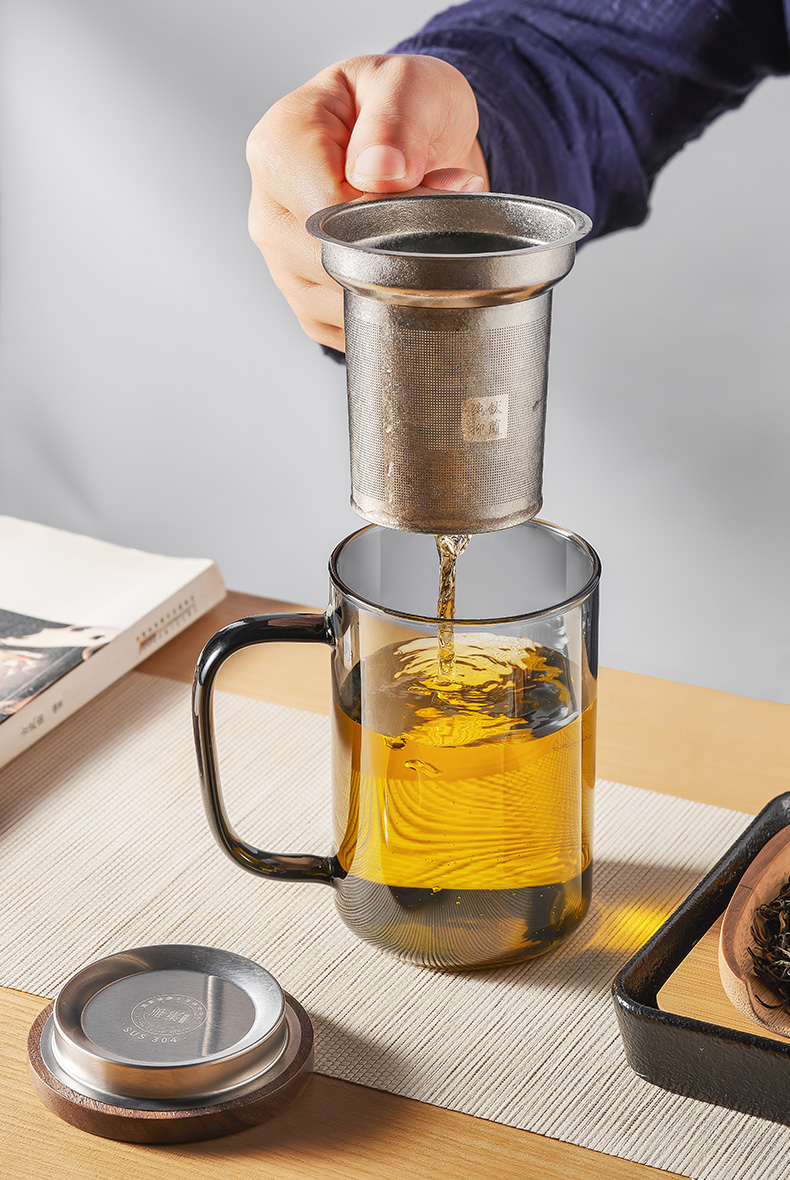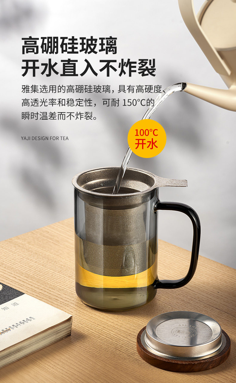雅集玻璃杯烟灰直觉杯500ml(钛茶隔-木盖款)