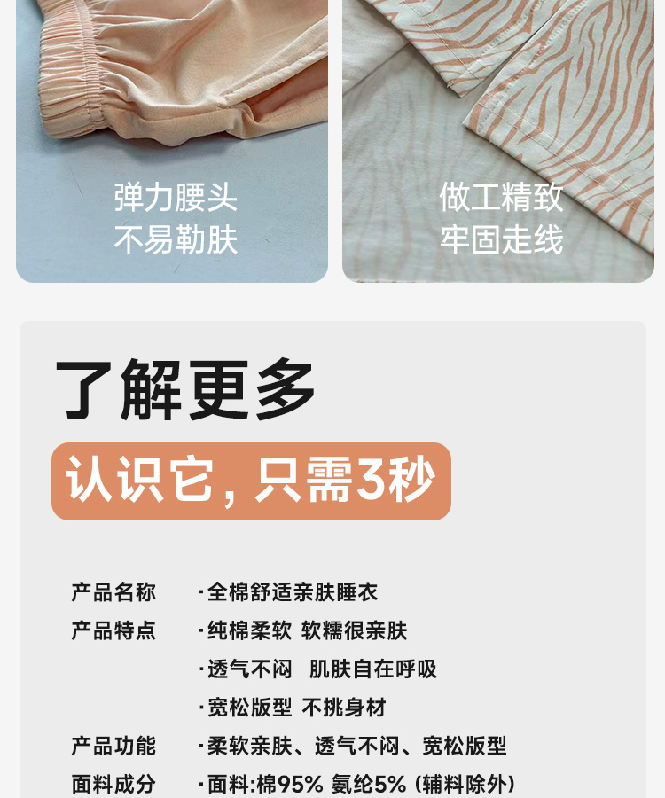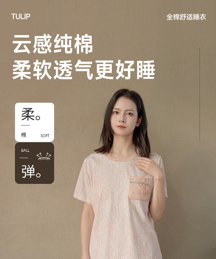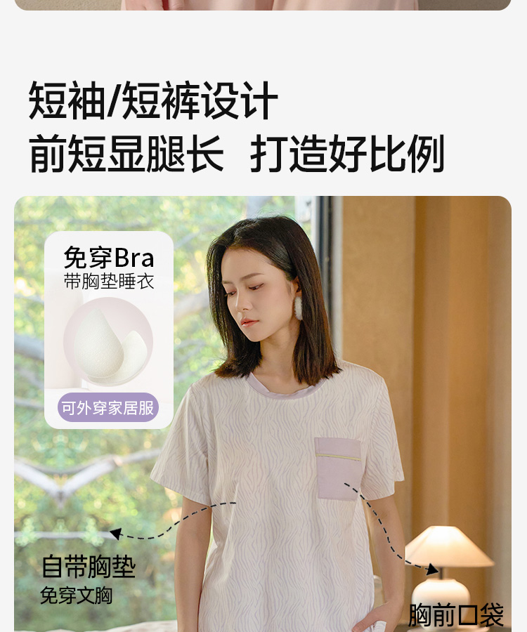 全棉舒适亲肤睡衣(波浪带胸垫)