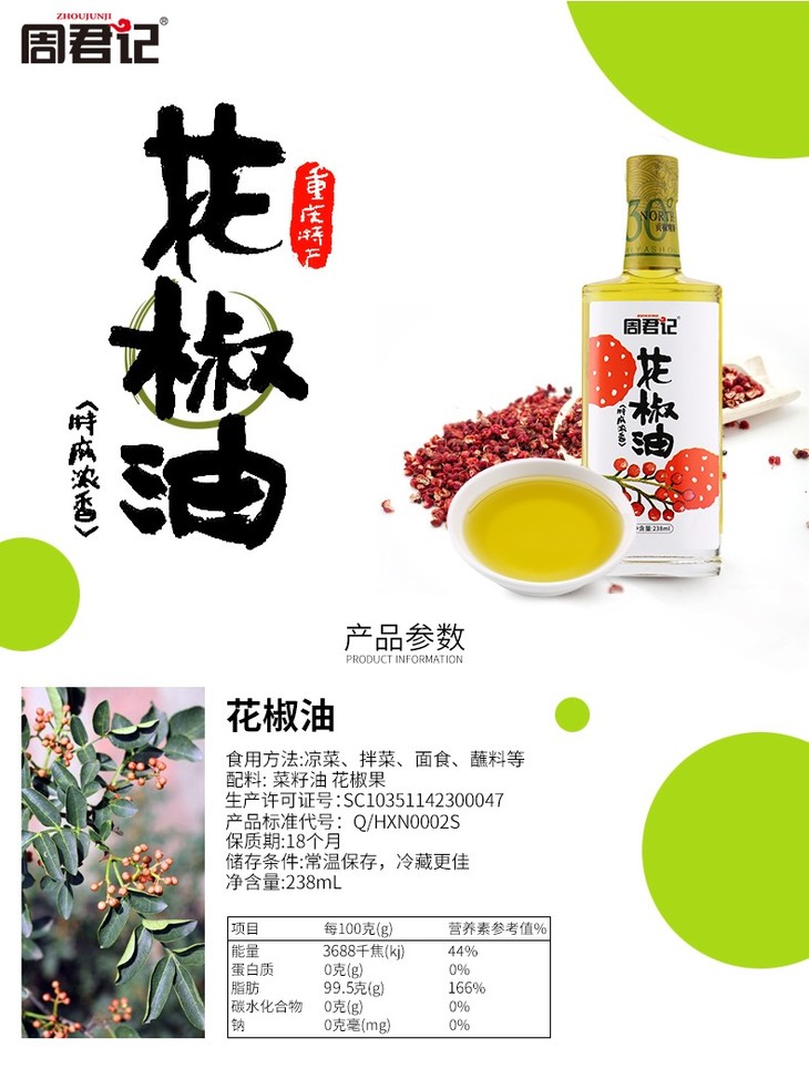 周君记 新品特惠 特麻花椒油238ML