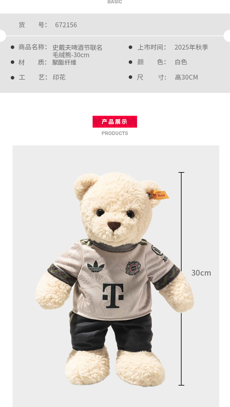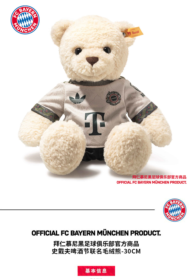 【官网同款】拜仁足球俱乐部丨史戴夫啤酒节联名毛绒熊可爱玩偶