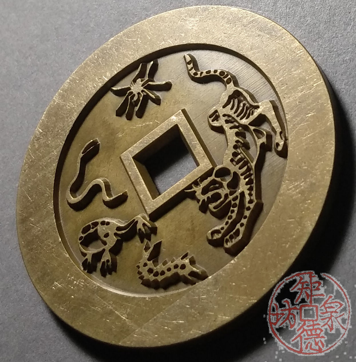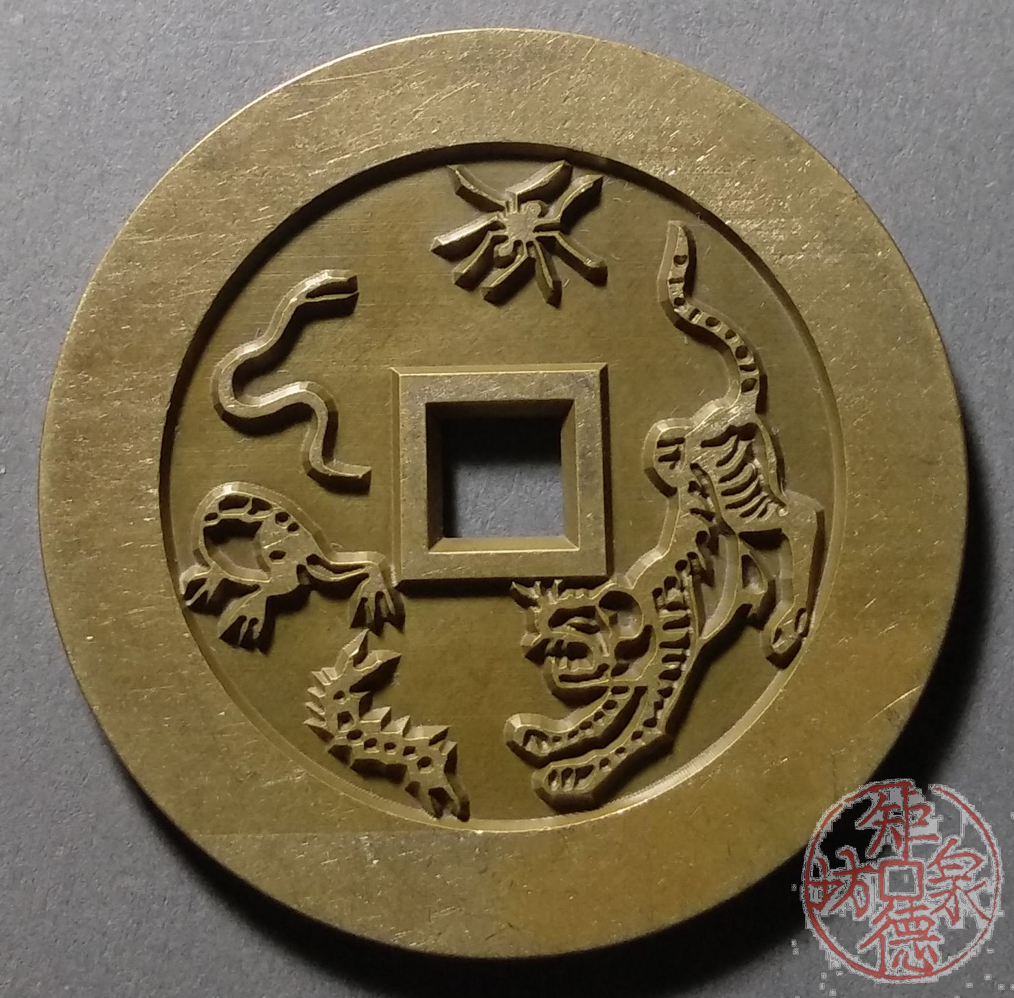 纯铜古法母钱翻砂铸造而成,容易上包浆。可用于文房镇纸、茶宠、杯子托、文玩垫、手把件……