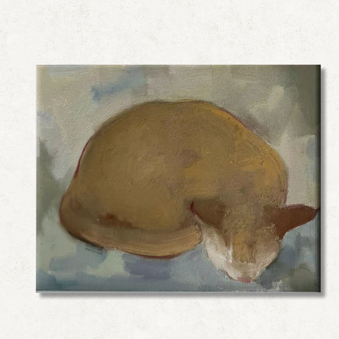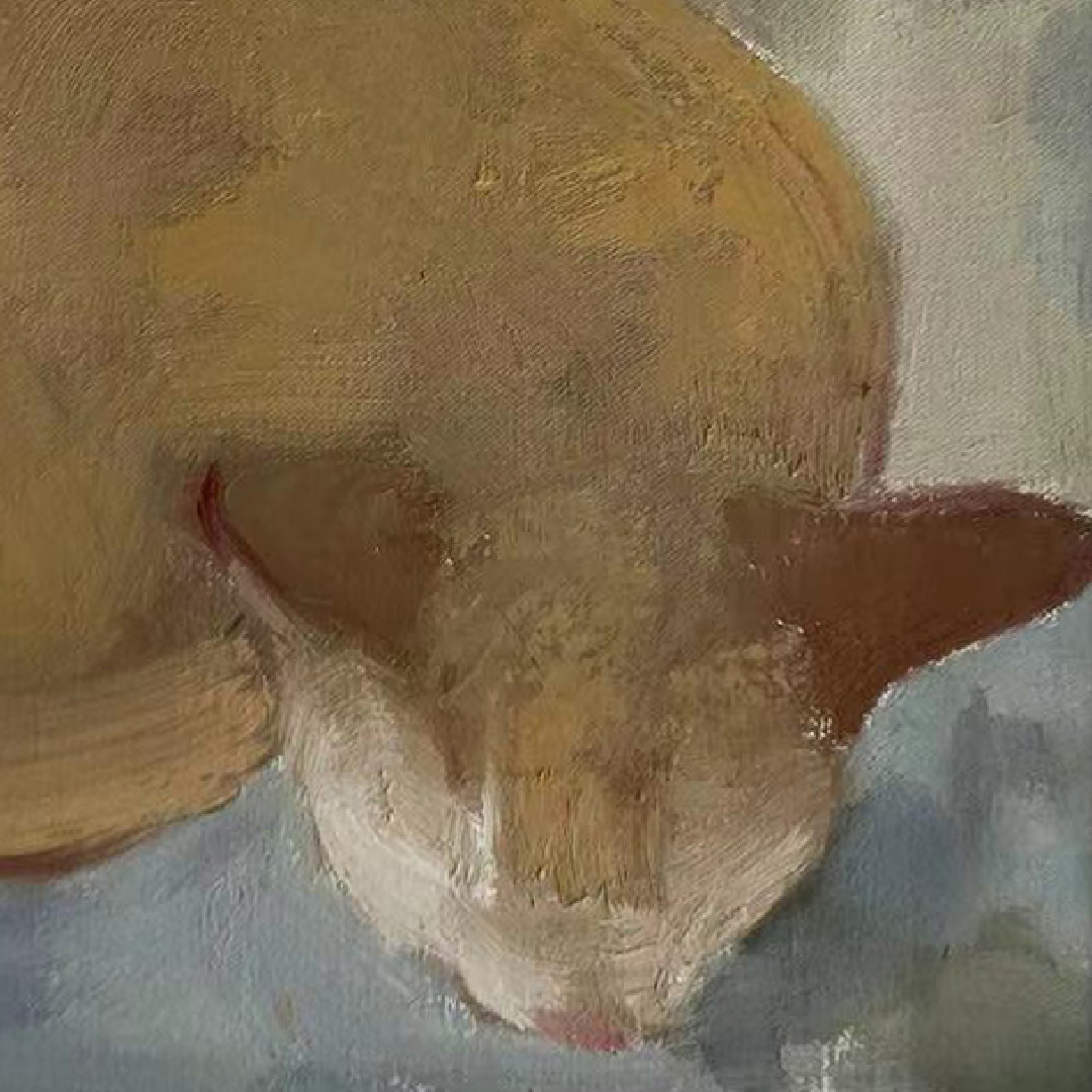 A02 孙洪敏《猫孩子》40*50CM 布面油画 手绘原作 已装框(白色木制)艺术家本人特供 仅有1张现货顺丰包邮