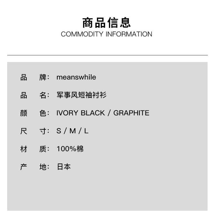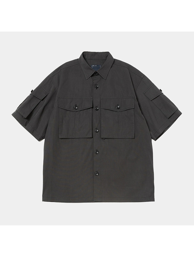 meanswhile Trinity Chambray Safari 机能性面料军事风短袖衬衫