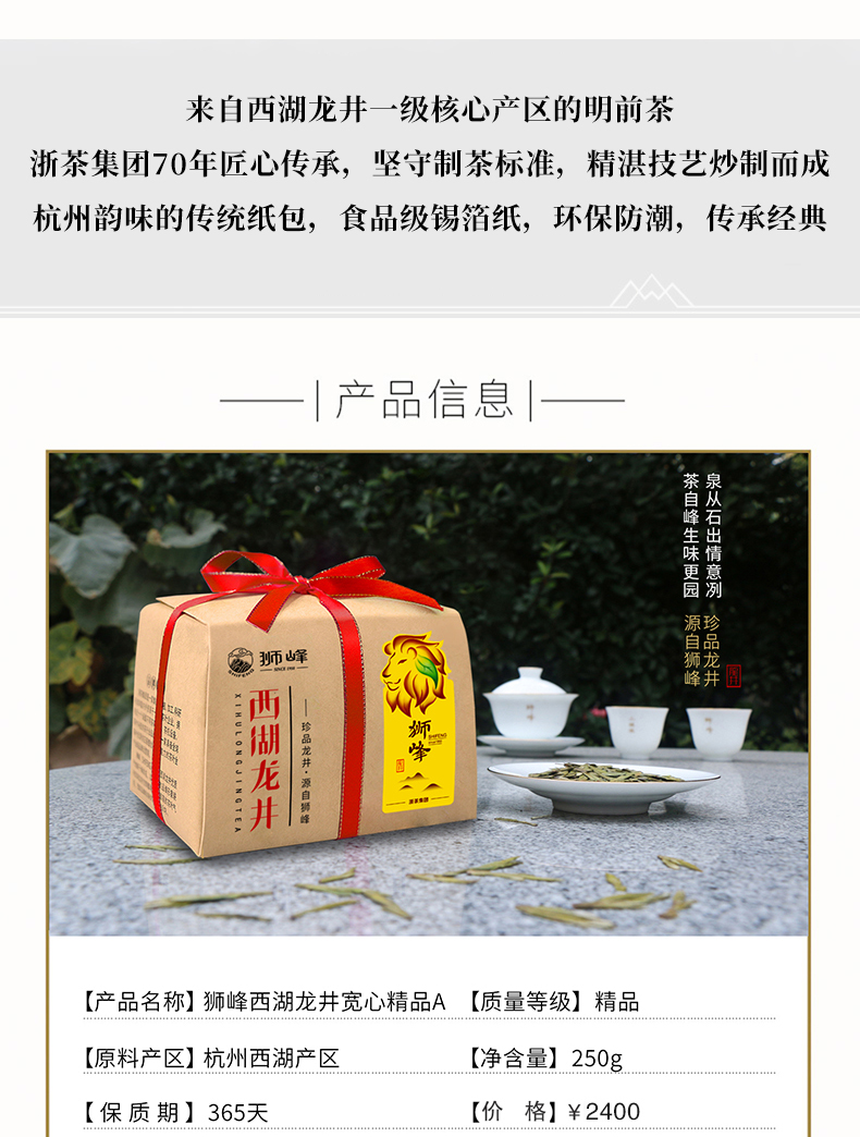 西湖龙井宽心精品5A 250g纸包 茶叶