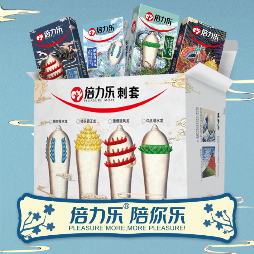 倍力乐避孕套螺纹狼牙套男用延时带刺大颗粒超薄安全套成人计生用品 【共12只】四小龙各一盒