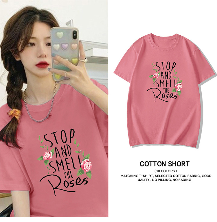 字母印花短袖t恤女2022夏潮韩版宽松纯棉上衣学生白色半袖体恤