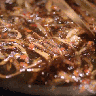 山野油牛肝菌,味更独特。 🍄新鲜牛肝菌下锅,需要不停的人工翻炒🥢 这个过程⏰越漫长越好,牛肝菌🍄每失去一部分水分,就会增加一部分香味~! 唯有小火干煸💡才能把牛肝菌的香味一点点给逼出来‼️ 大片菌肉更为肥美,带有酱香的味道也着实撩人。一口下去,欲罢不能。
