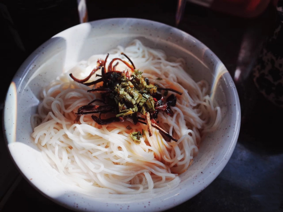 清汤面,夹上一筷子鸡枞,滴上三五滴油,素食吃出荤菜的感觉,一碗热面暖脾胃,一口鸡枞醒味蕾,这一碗面,千金不换!
