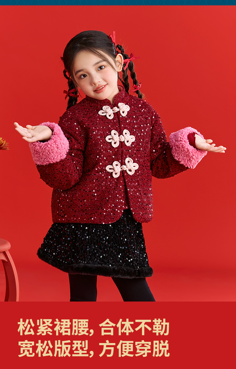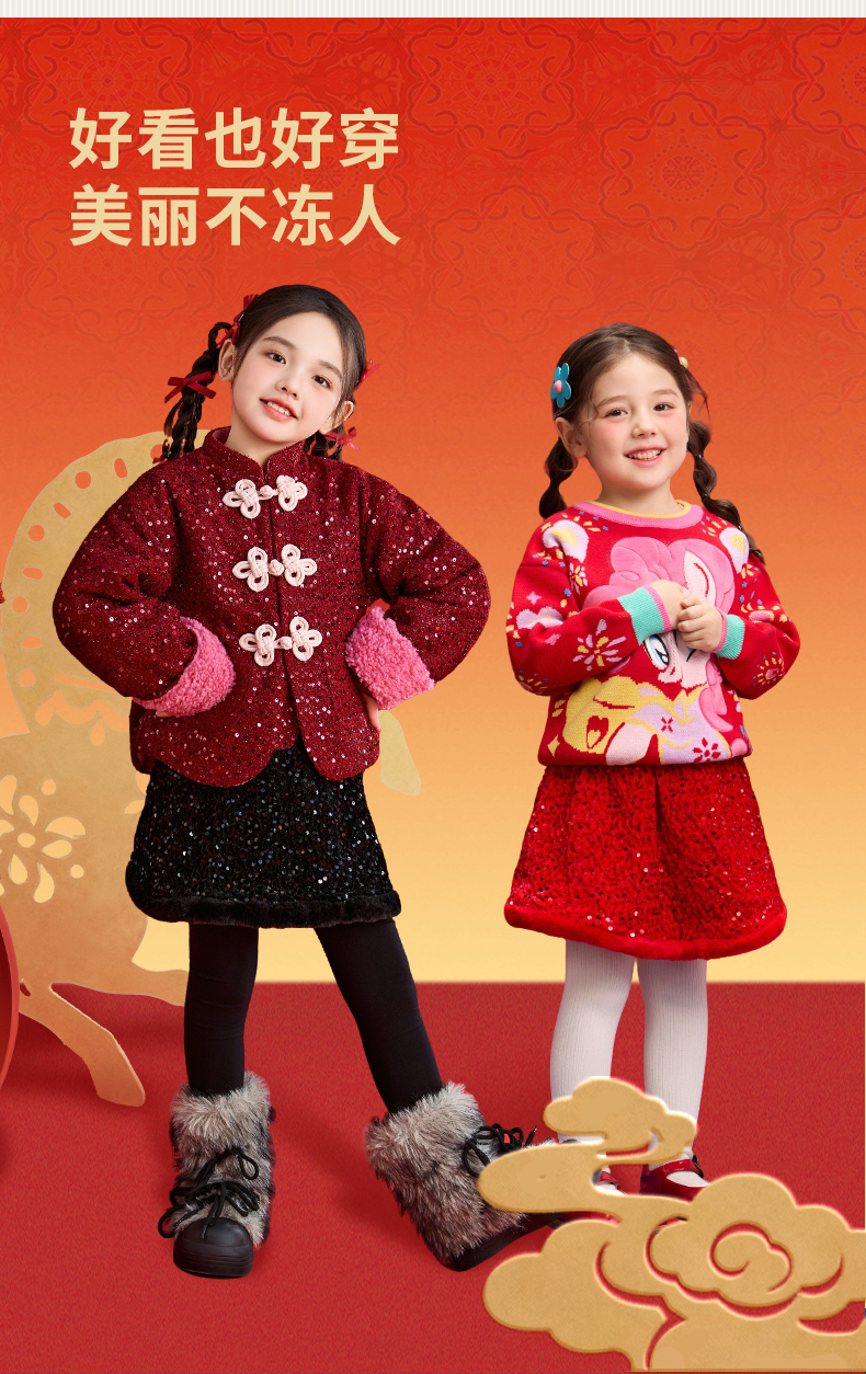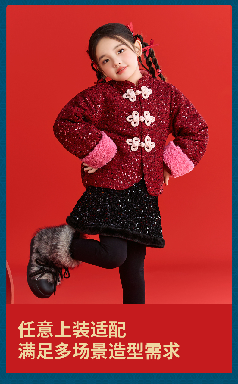 【年衣品牌团】年衣童装儿童半身裙冬季新品女童中式裙子女孩摩登时代半身裙 1207