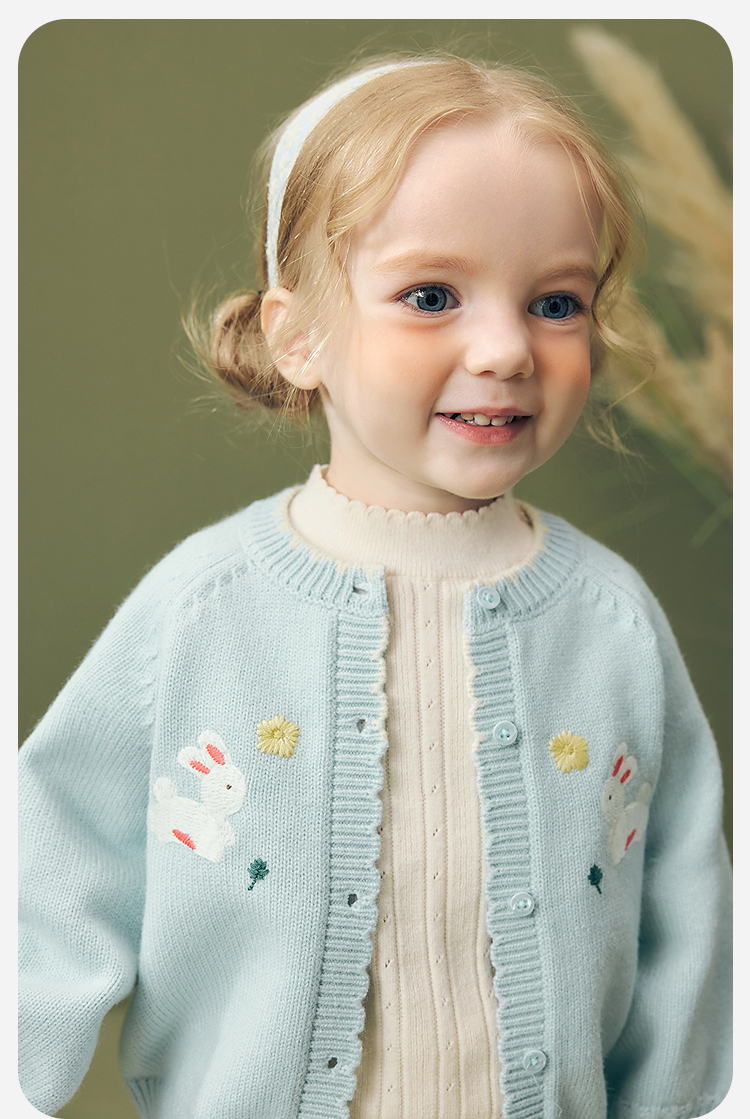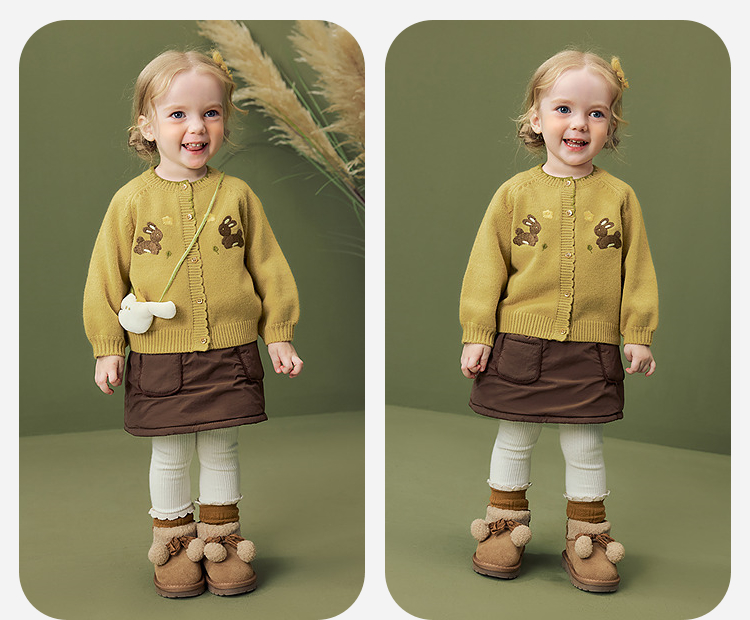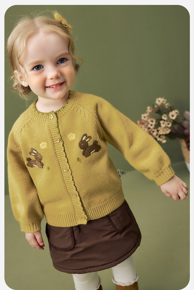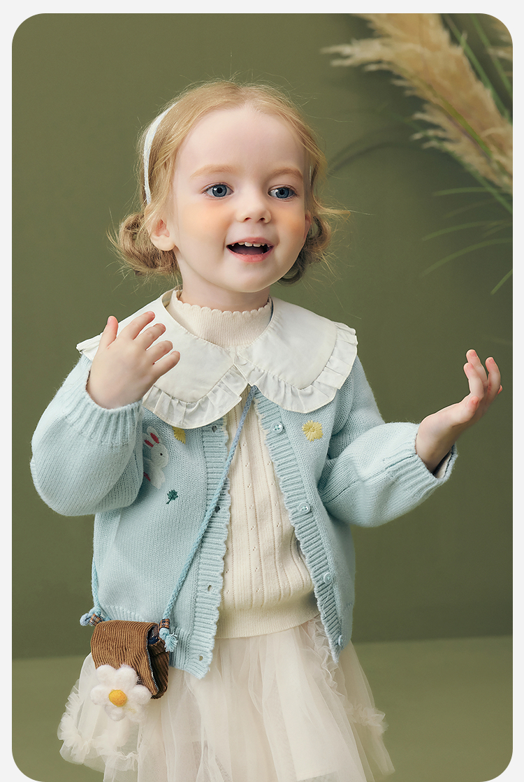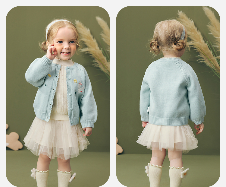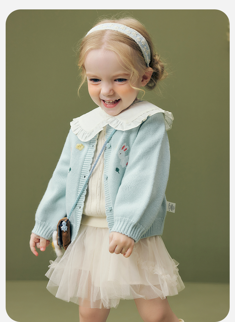 迷你巴拉婴儿宝宝女童毛衣2025冬新款甜美灯笼袖毛衫开衫