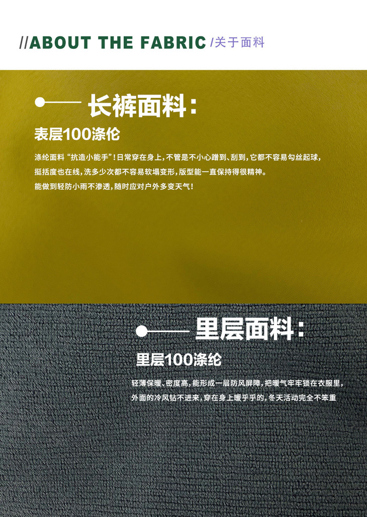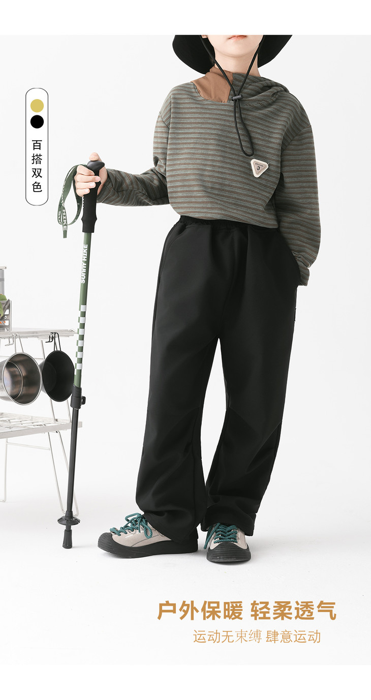 裤户外裤最大的一个特点就是耐磨耐穿 因为我们在户外,刮刮蹭蹭都是常态 耐磨的面料,有效的防止了宝宝刮伤 里面柔软舒适,外面给予坚实的保护 无论是孩子在户外还是日常穿搭 家长们都可以放心的一点就是保暖性
