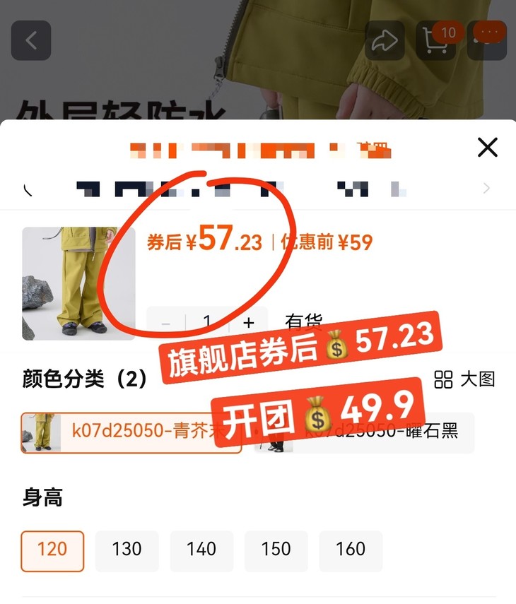 旗舰店券后💰57.23 开团💰49.9 尺码:120~160码 2色可选,青芥末和曜石黑,玩转户外~