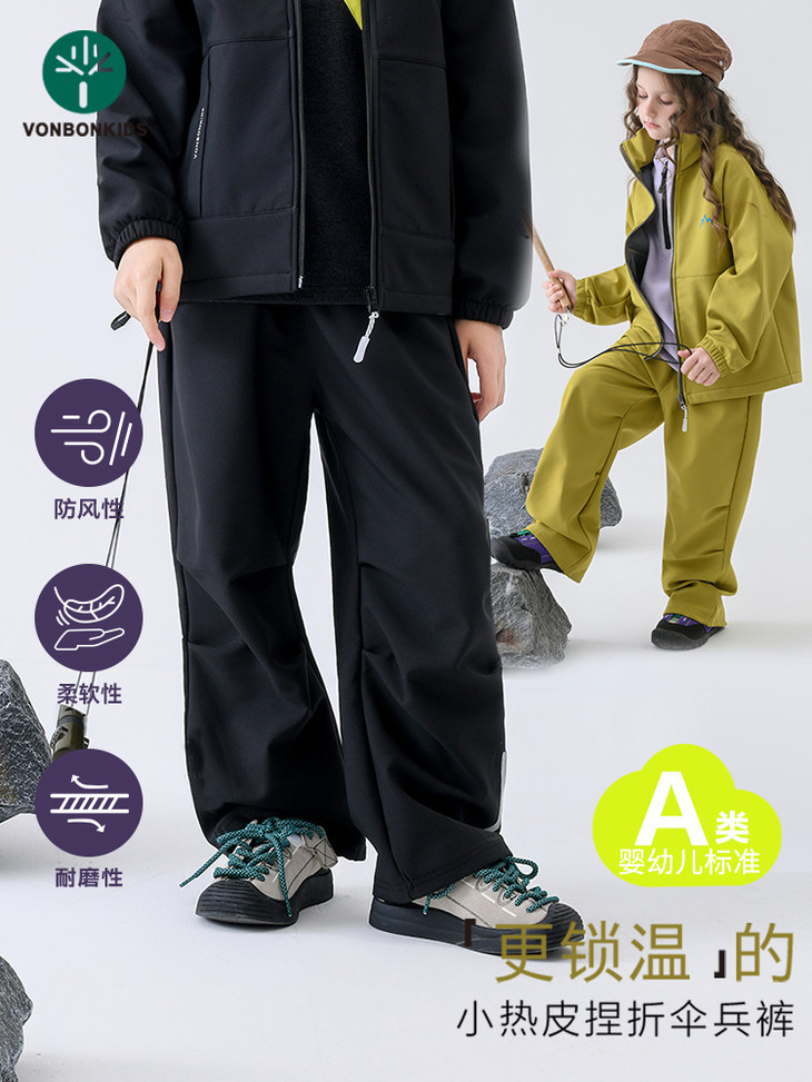 🥰【vonbonkids 三防软壳小热皮捏折户外伞兵裤k07d25050款】💰49.9,秋日穿搭必备!男女童同款! 💗运动娃刚需神裤,防风又舒适,品牌直发!