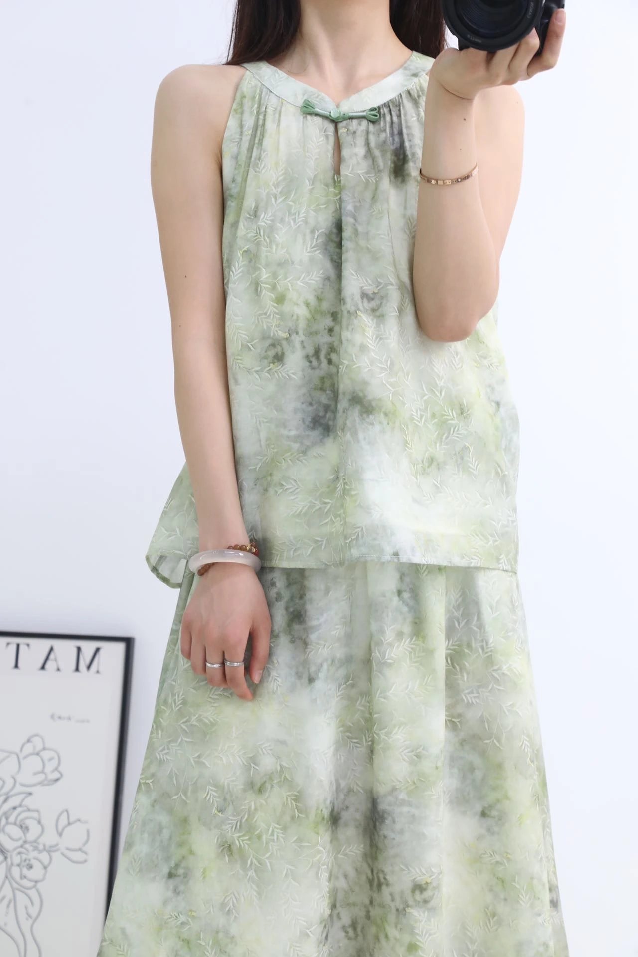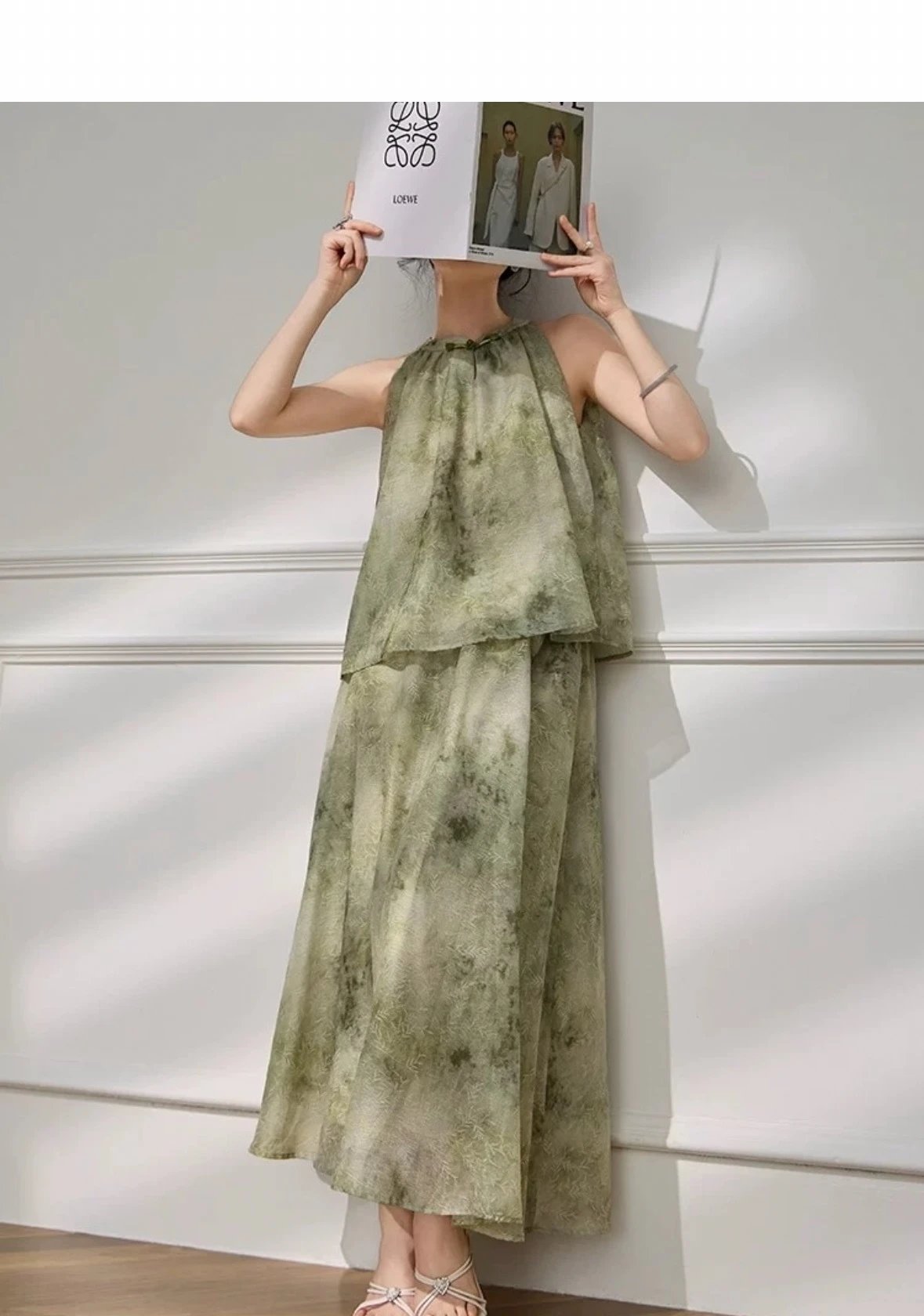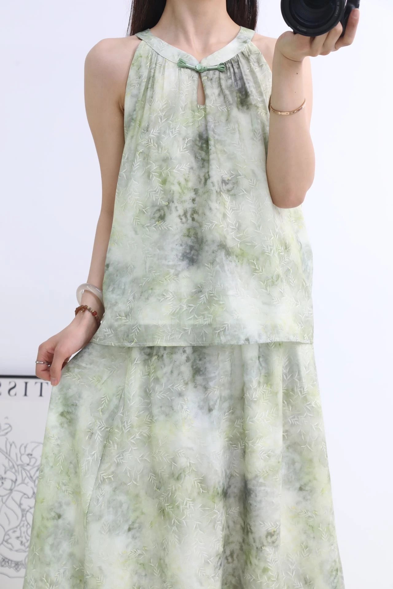 设计:挂脖领口+精致盘扣,中式元素狠狠拿捏,典雅又别致,东方韵味拉满。上衣宽松有层次,悄悄把肉肉藏起来;阔腿长裙chao会修饰身形,随性大气,走路都带风~