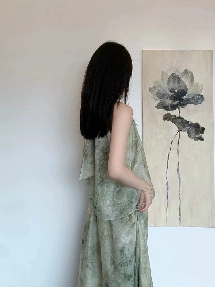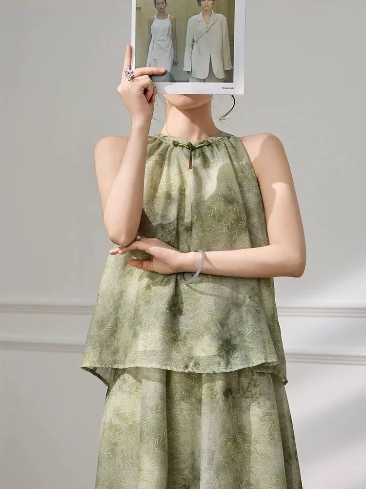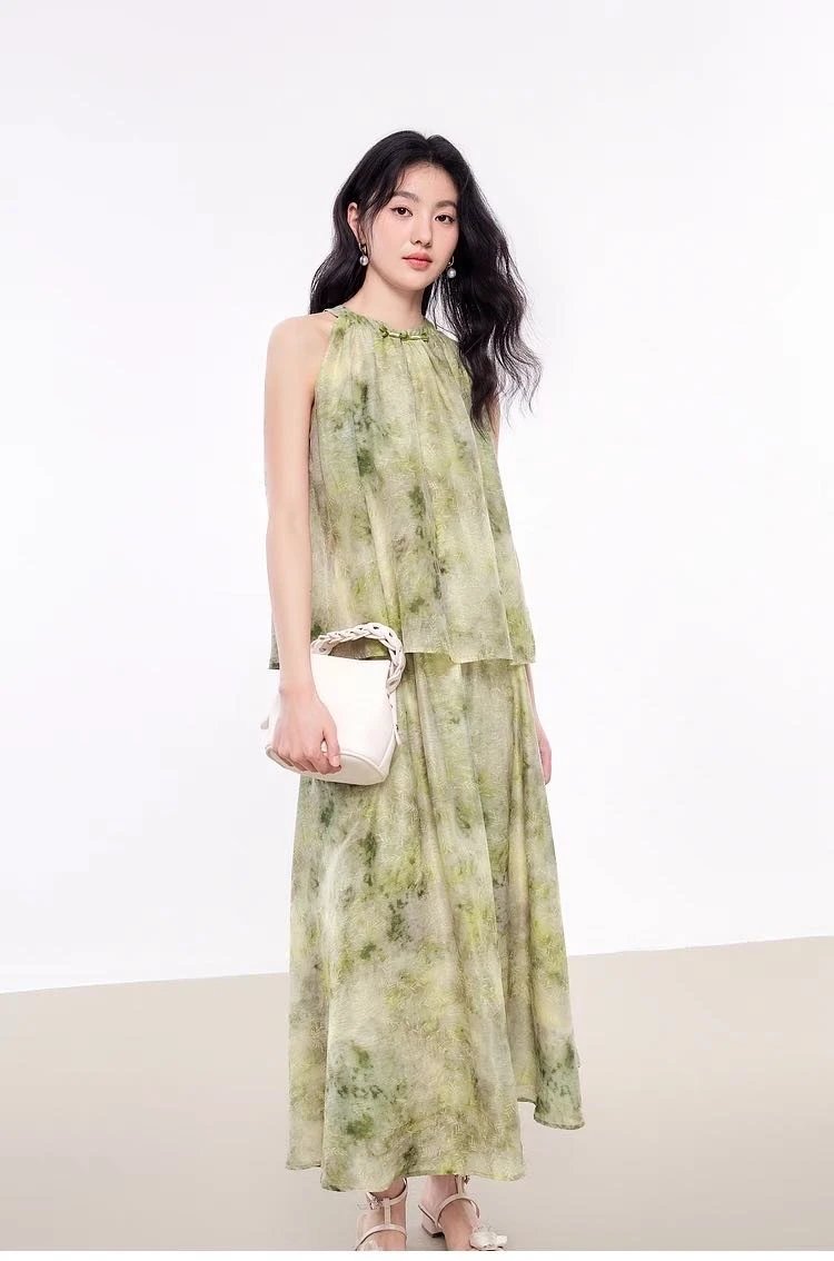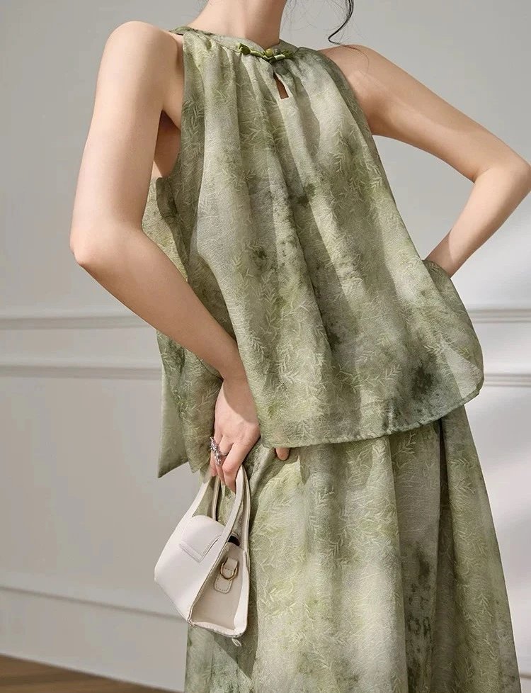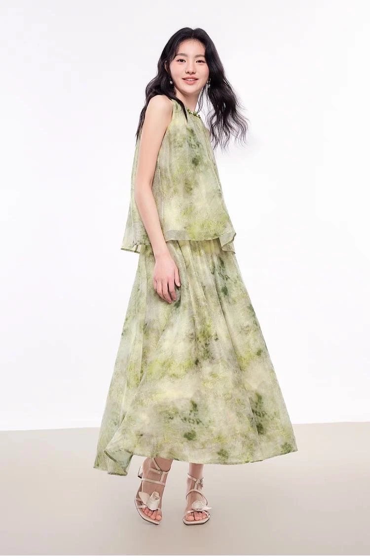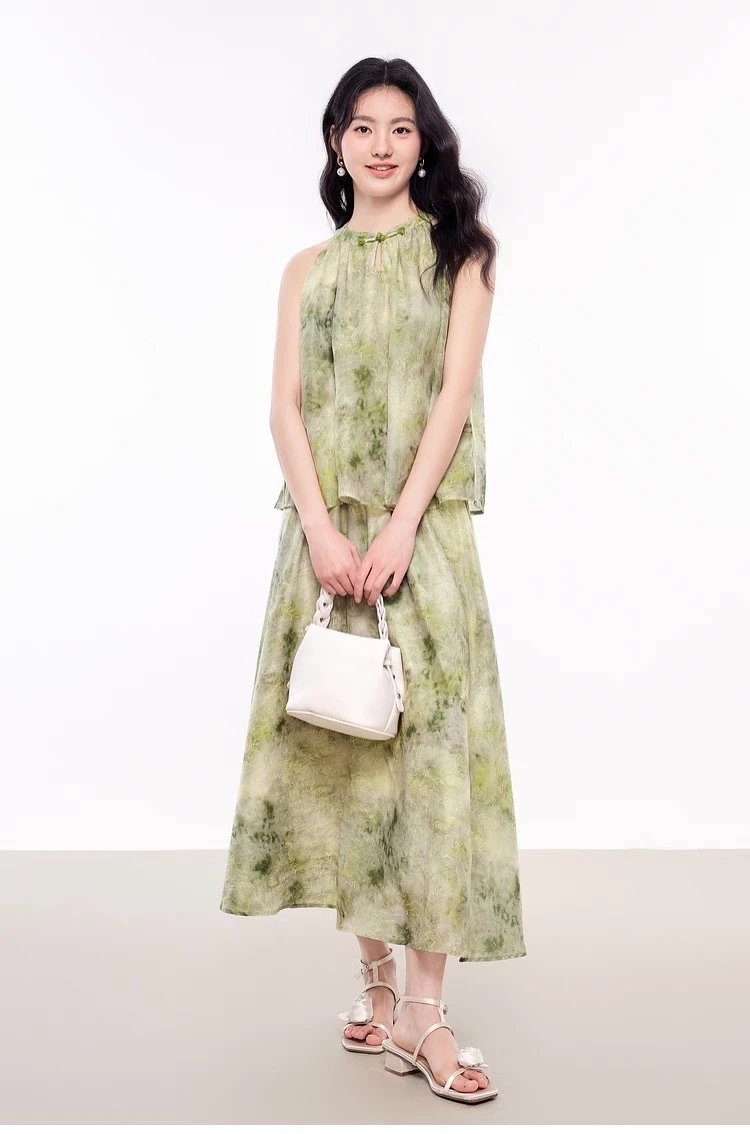 穿搭:搭小白鞋,休闲氛围感轻松get;换高跟鞋,出席正式场合也chao有范儿,风格随意切换~清新绿调配上水墨晕染印花,独特又吸睛,走在街上回头率爆表!