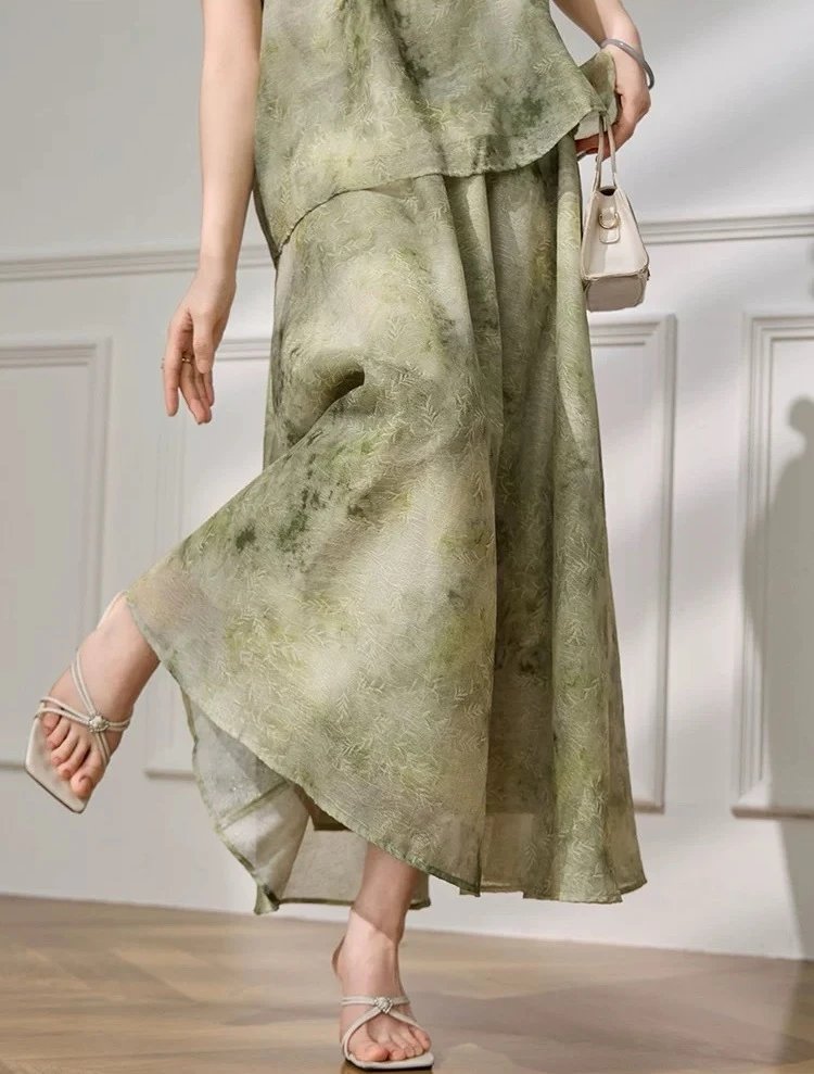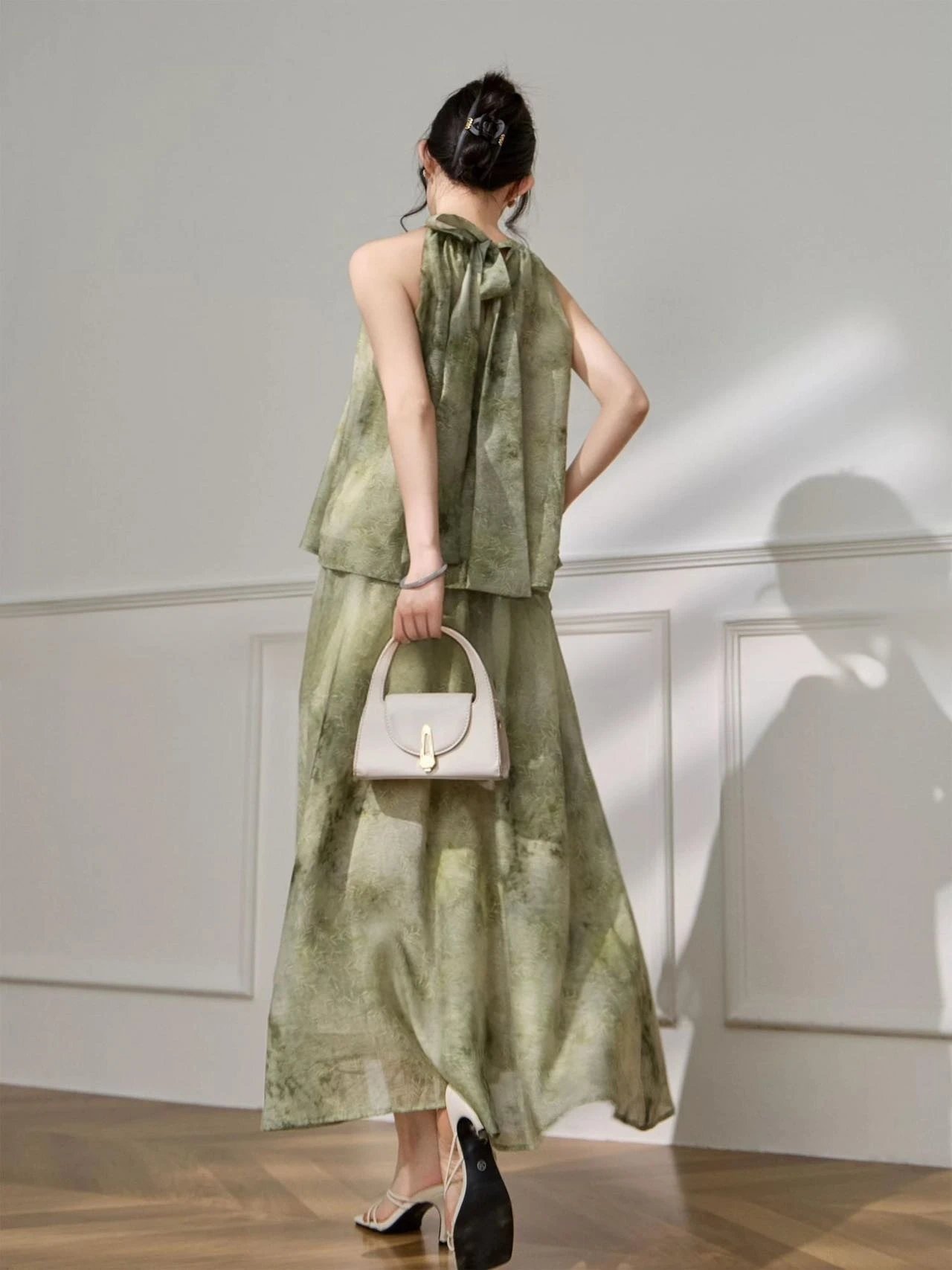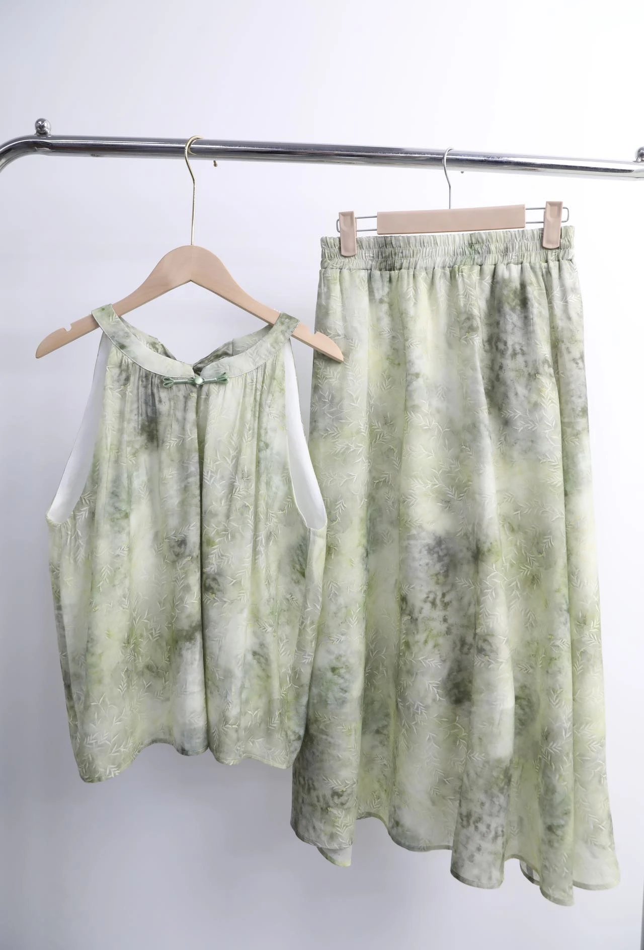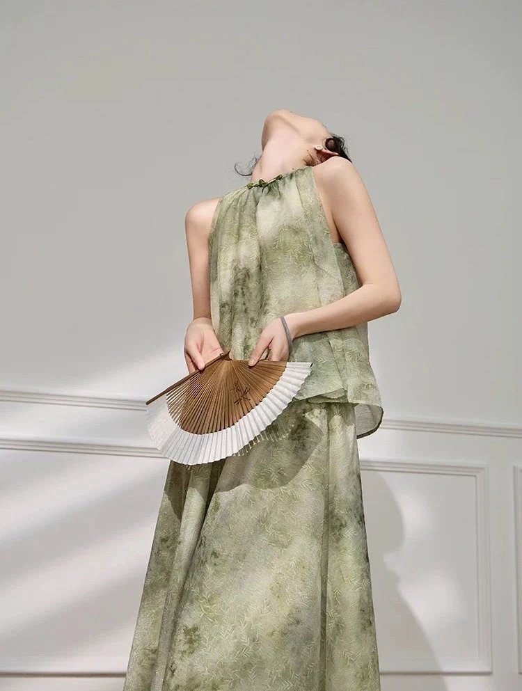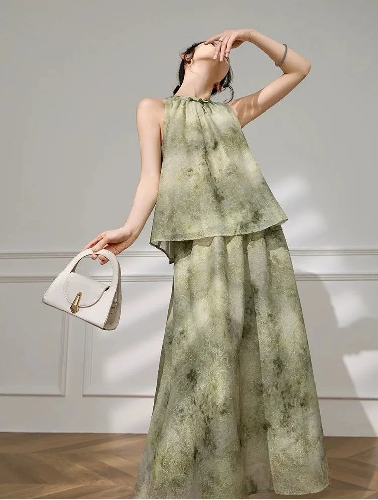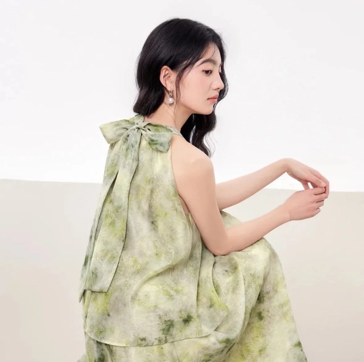 穿搭:搭小白鞋,休闲氛围感轻松get;换高跟鞋,出席正式场合也chao有范儿,风格随意切换~清新绿调配上水墨晕染印花,独特又吸睛,走在街上回头率爆表!