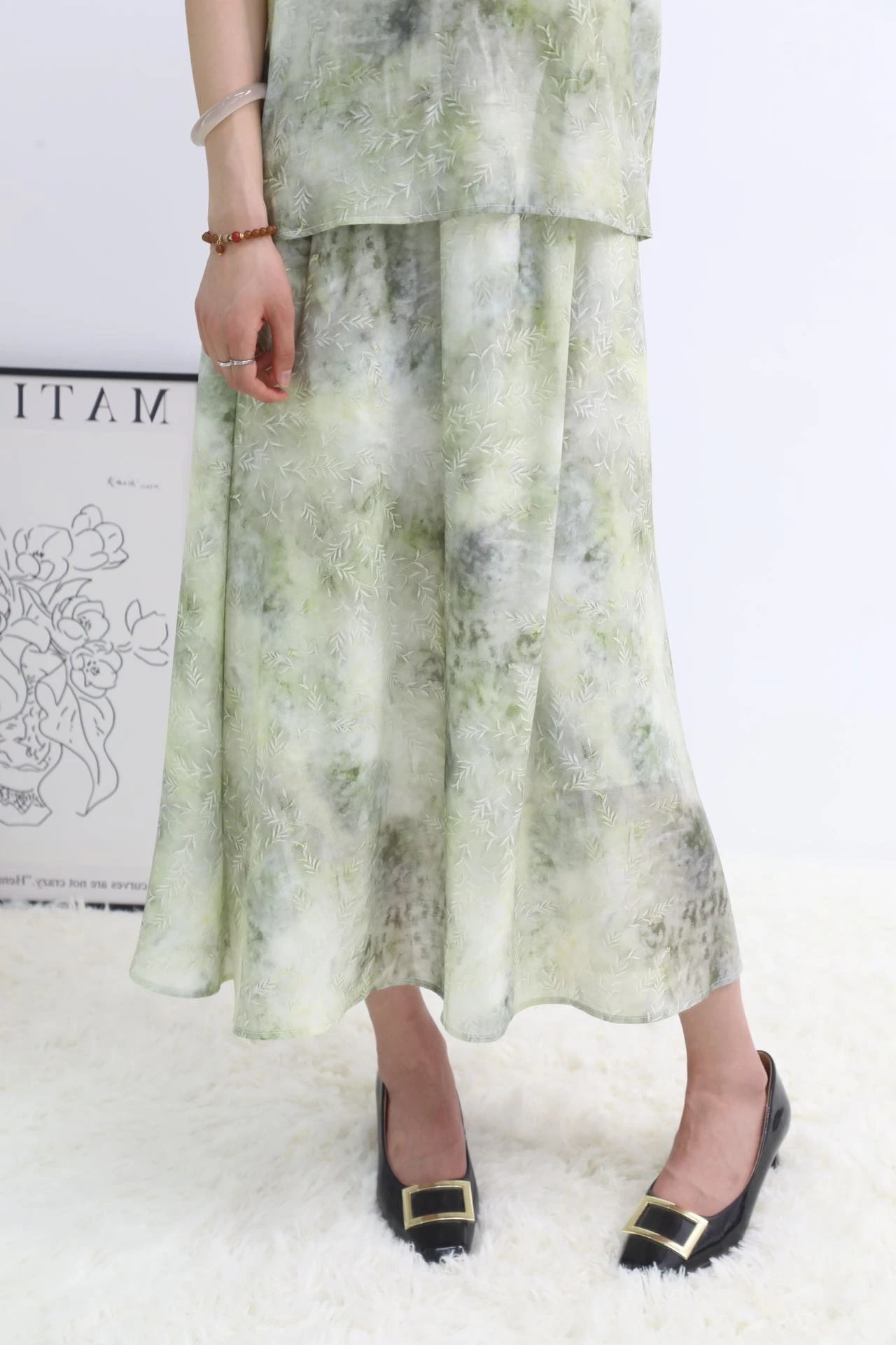【商品品名】新中式桑蚕丝竹叶提花半裙