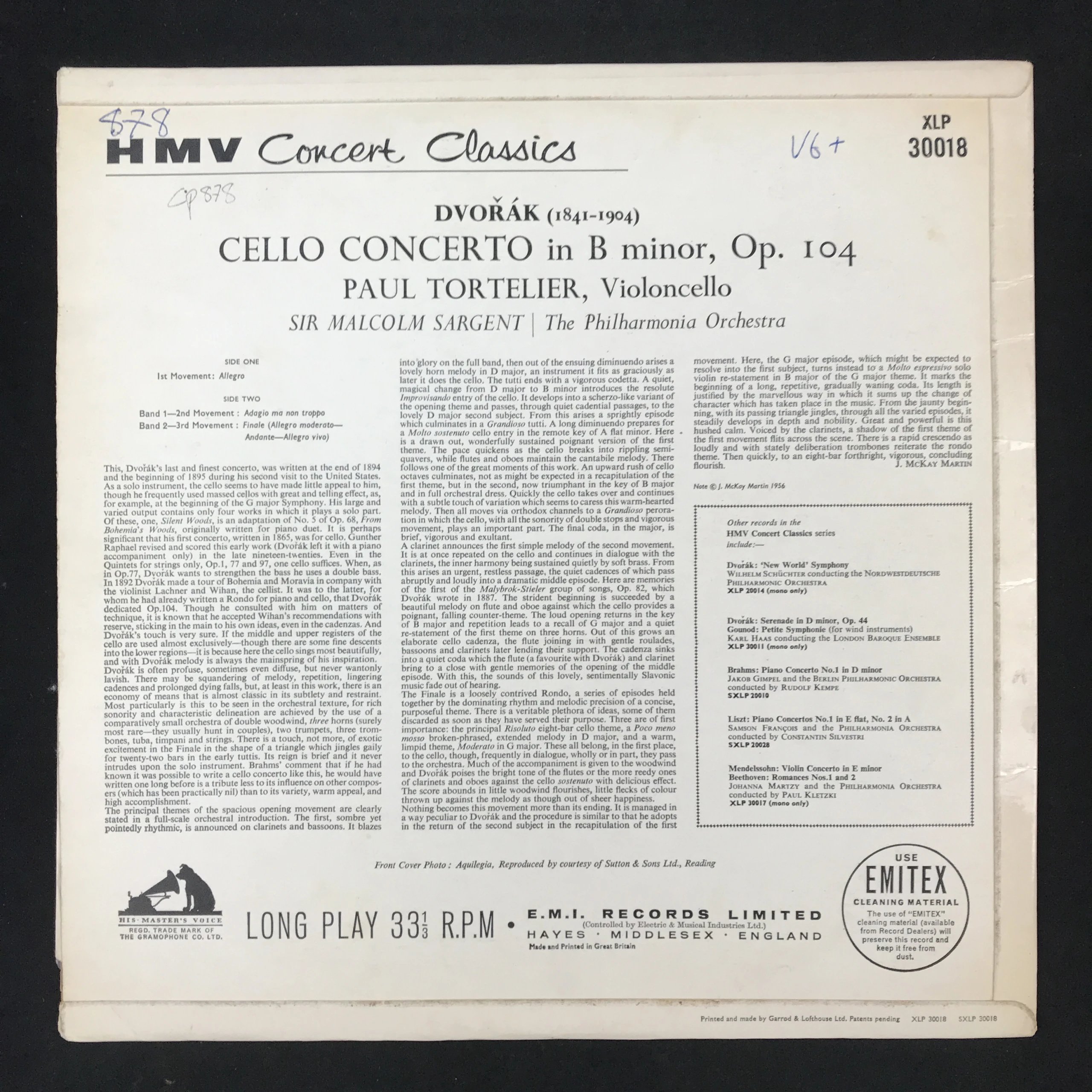 LP黑胶唱片 德沃夏克《B小调大提琴协奏曲OP.104》 英国爱乐乐团 马尔科姆·萨金特爵士指挥厂牌:His Master's Voice