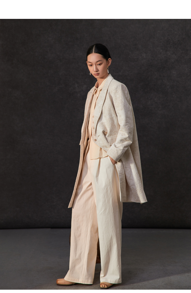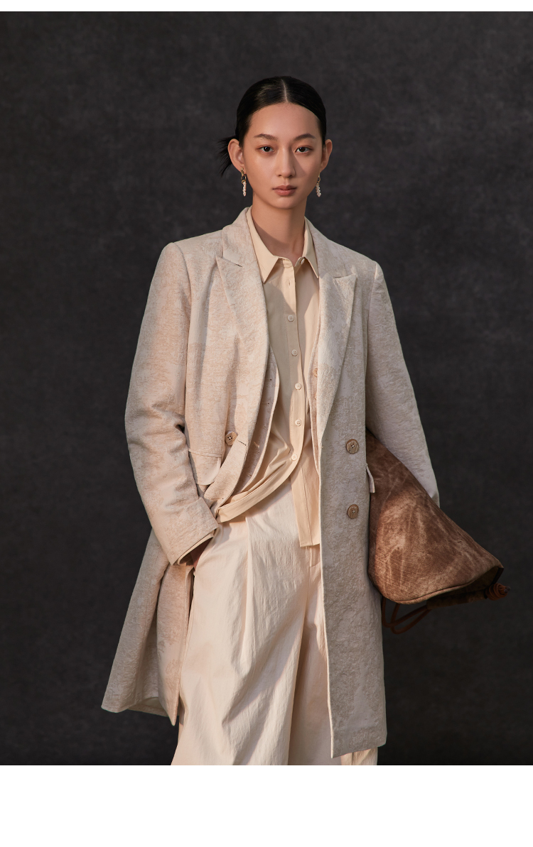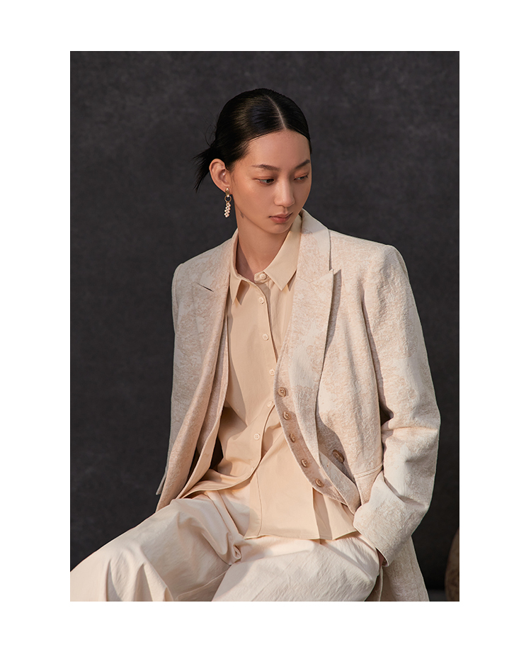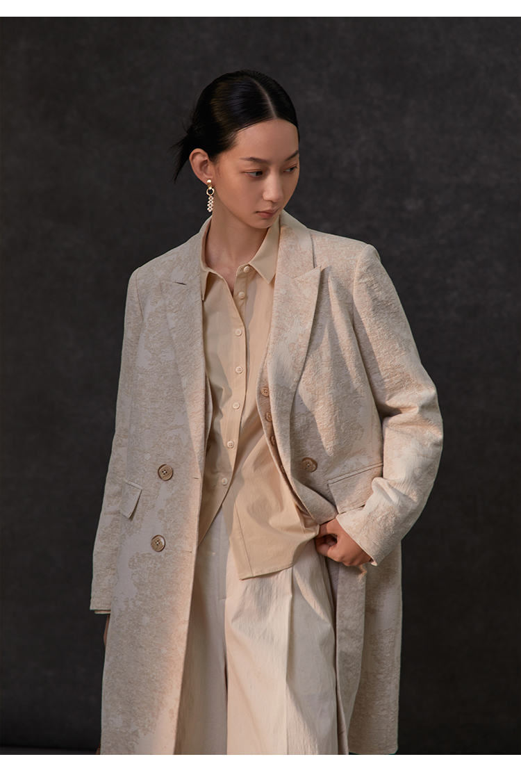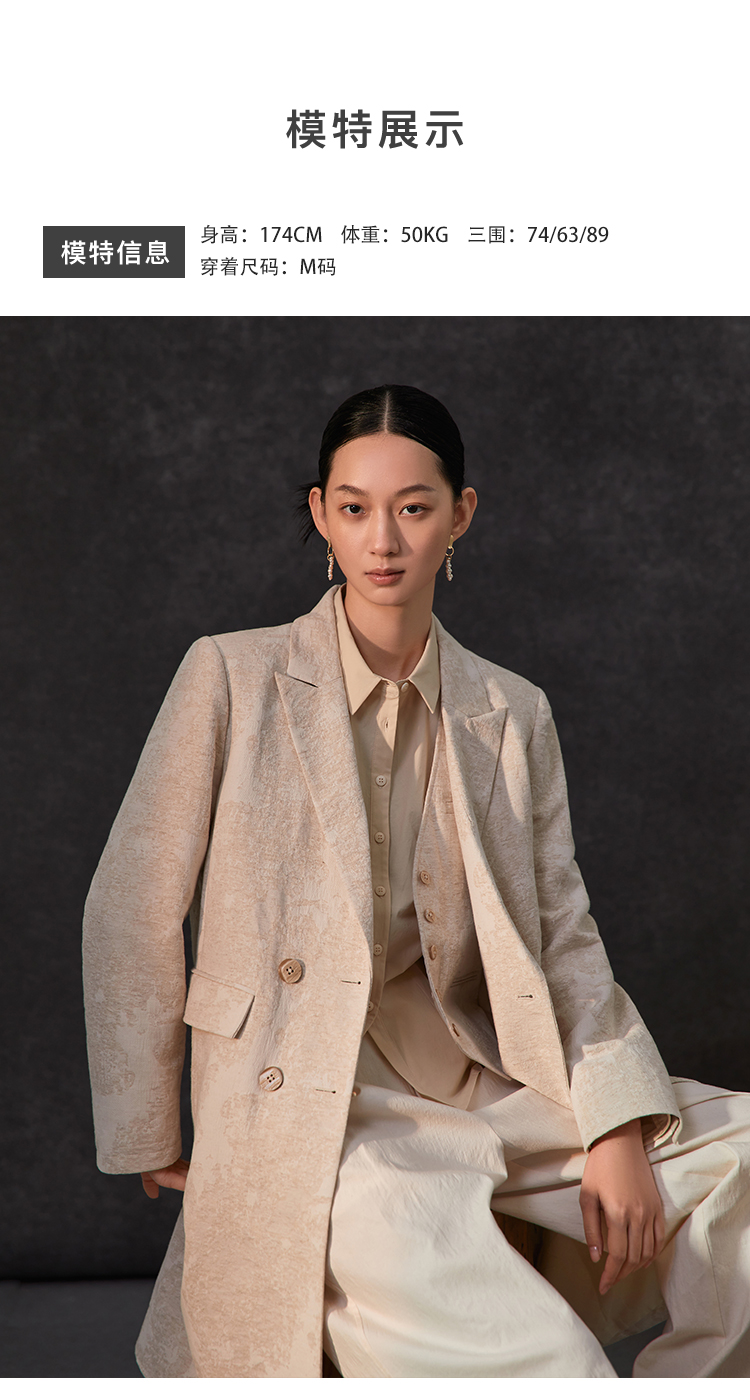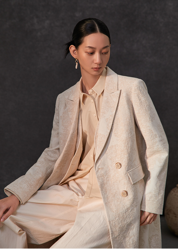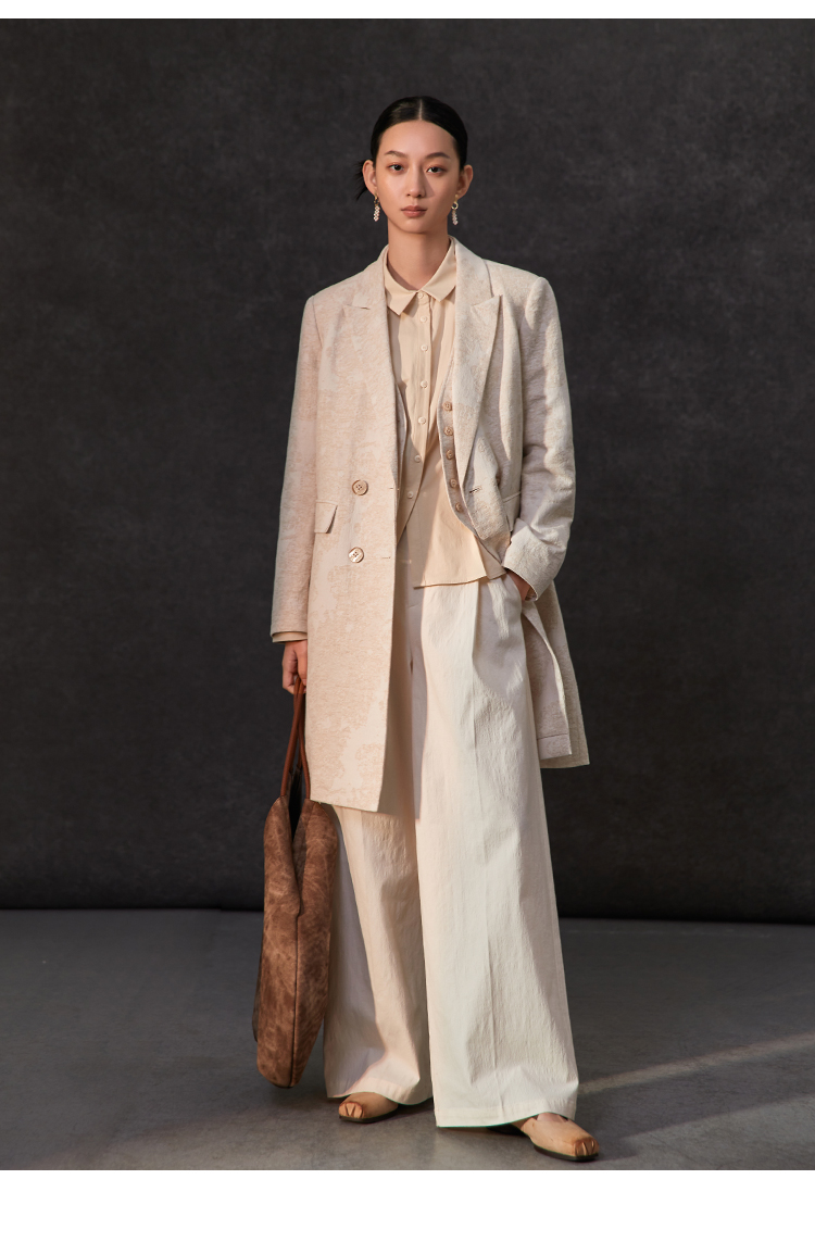 Famecoco范可儿春季棉麻文艺长西装外套新中式气质优雅西装FAC1AW002