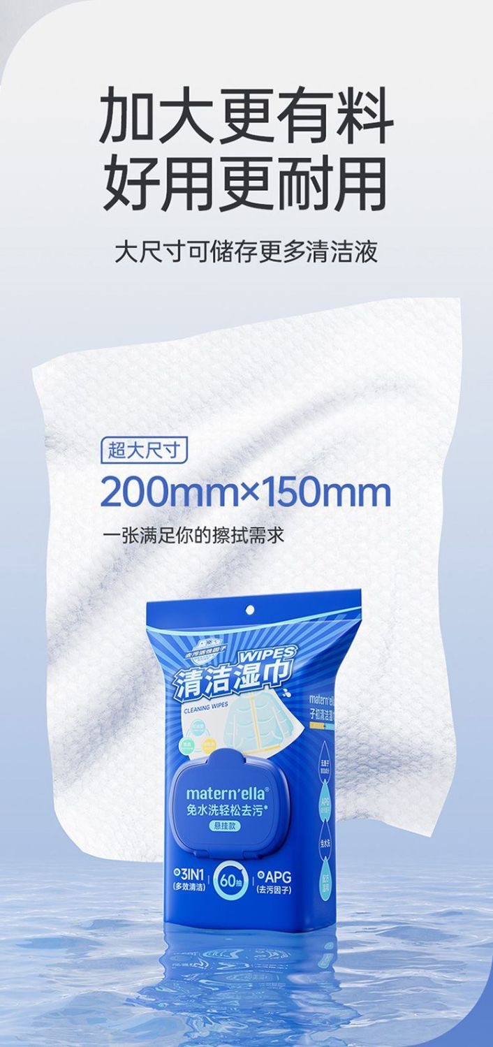 子初牌多功能清洁湿巾 200*150mm 60抽/包*3包/箱 (含1个挂钩3个背贴)