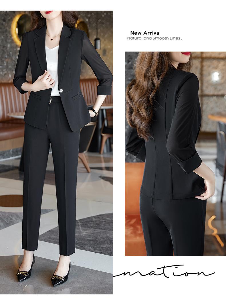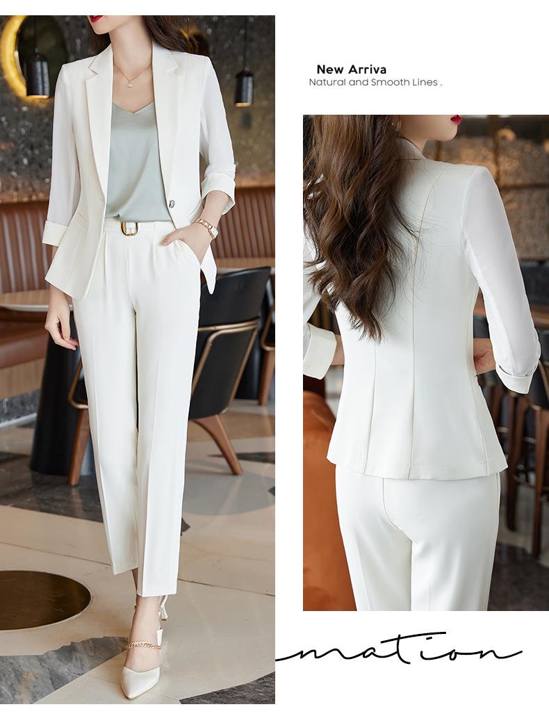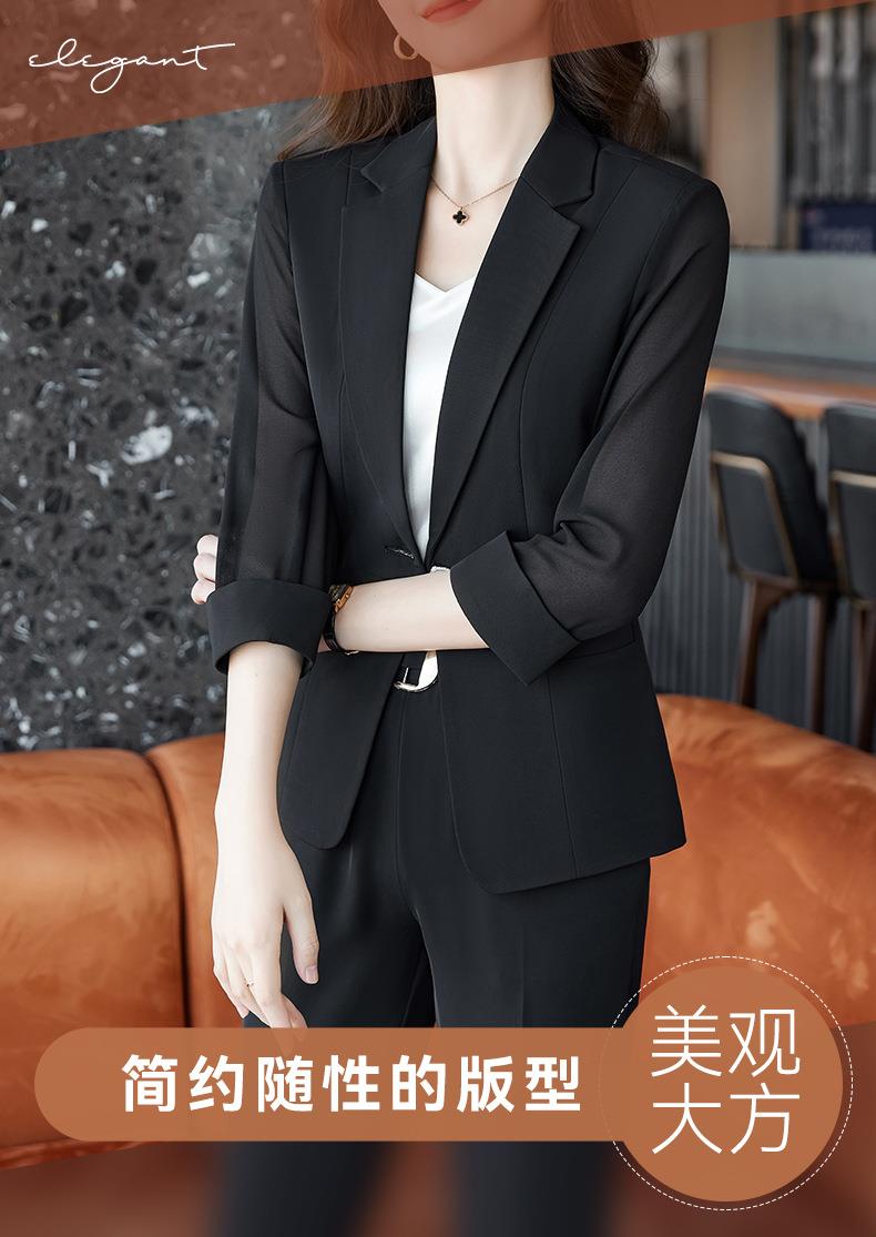 娜璐多 小脚裤套装女2023夏装新款修身时尚薄款西装两件套女神范轻熟风潮