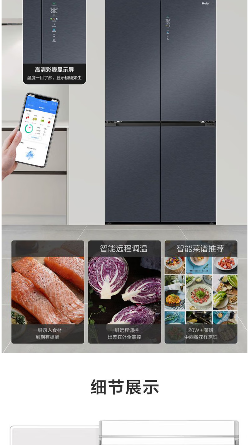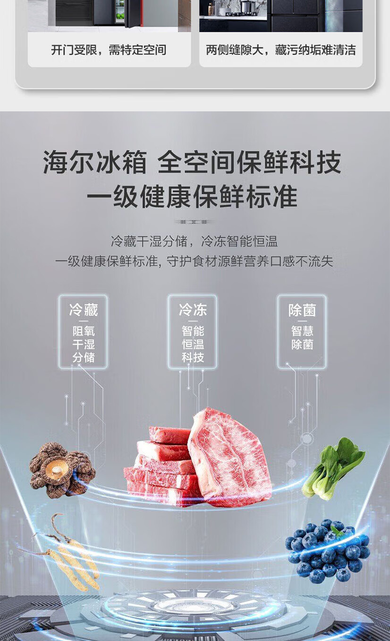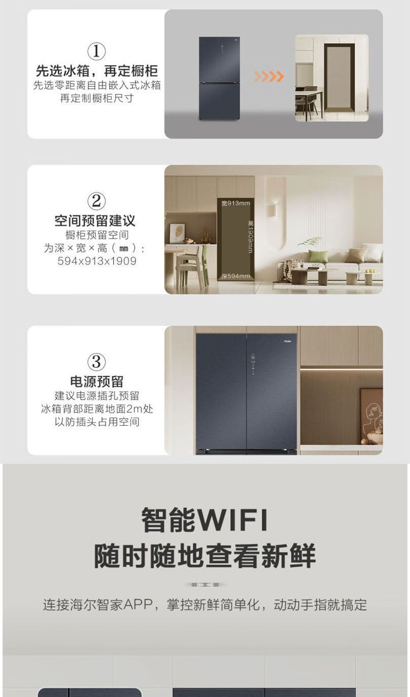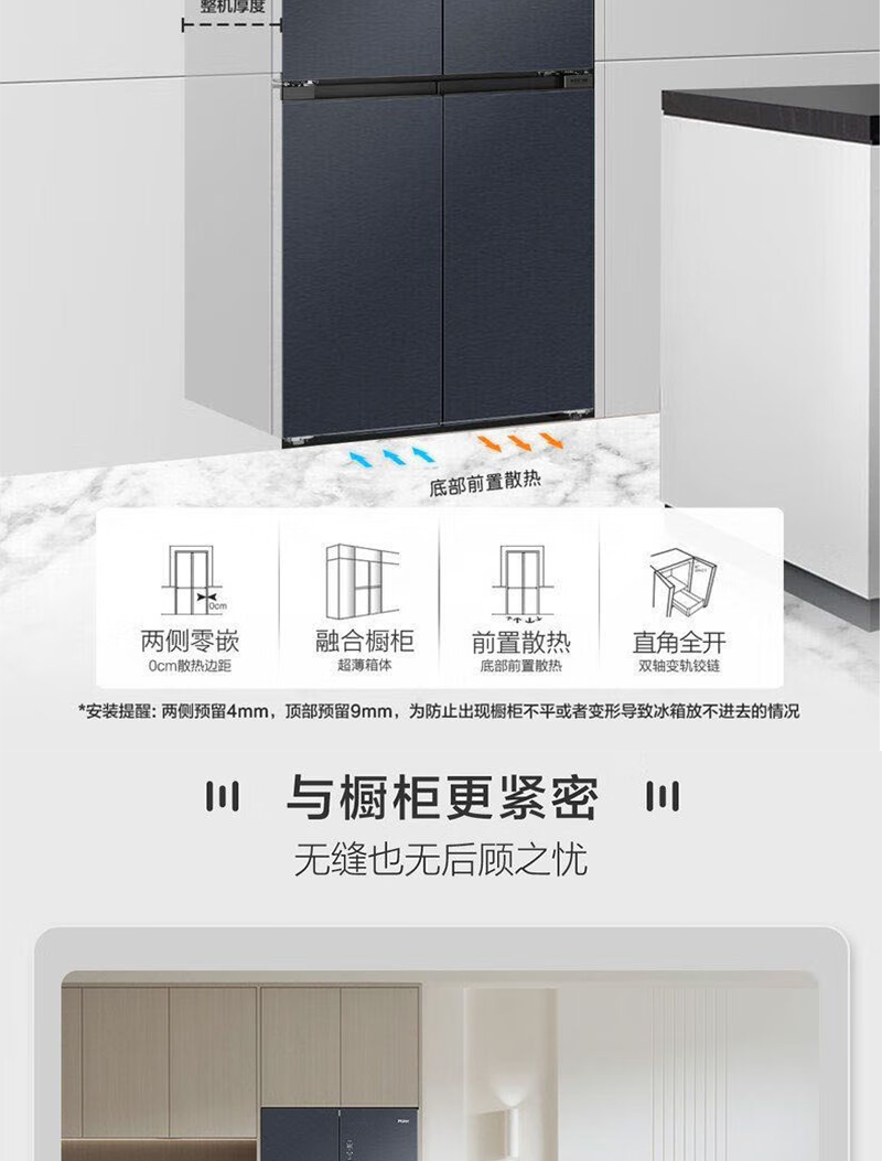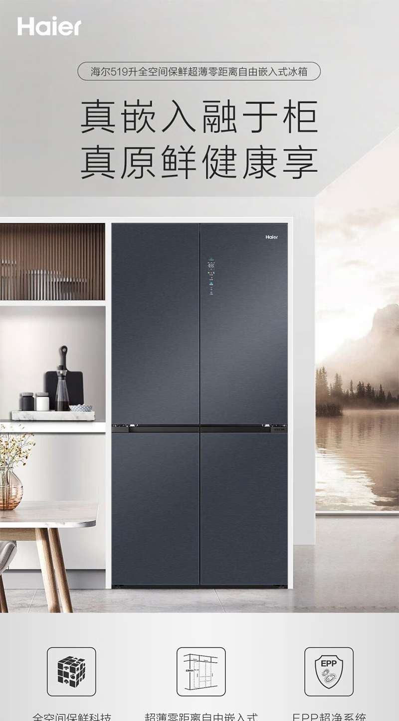 以旧换新-海尔519升全十字门空间保鲜科技零距离嵌入底部散热冰箱 EPP净味智能WIFI互联BCD-519WGHTD1BGTU1