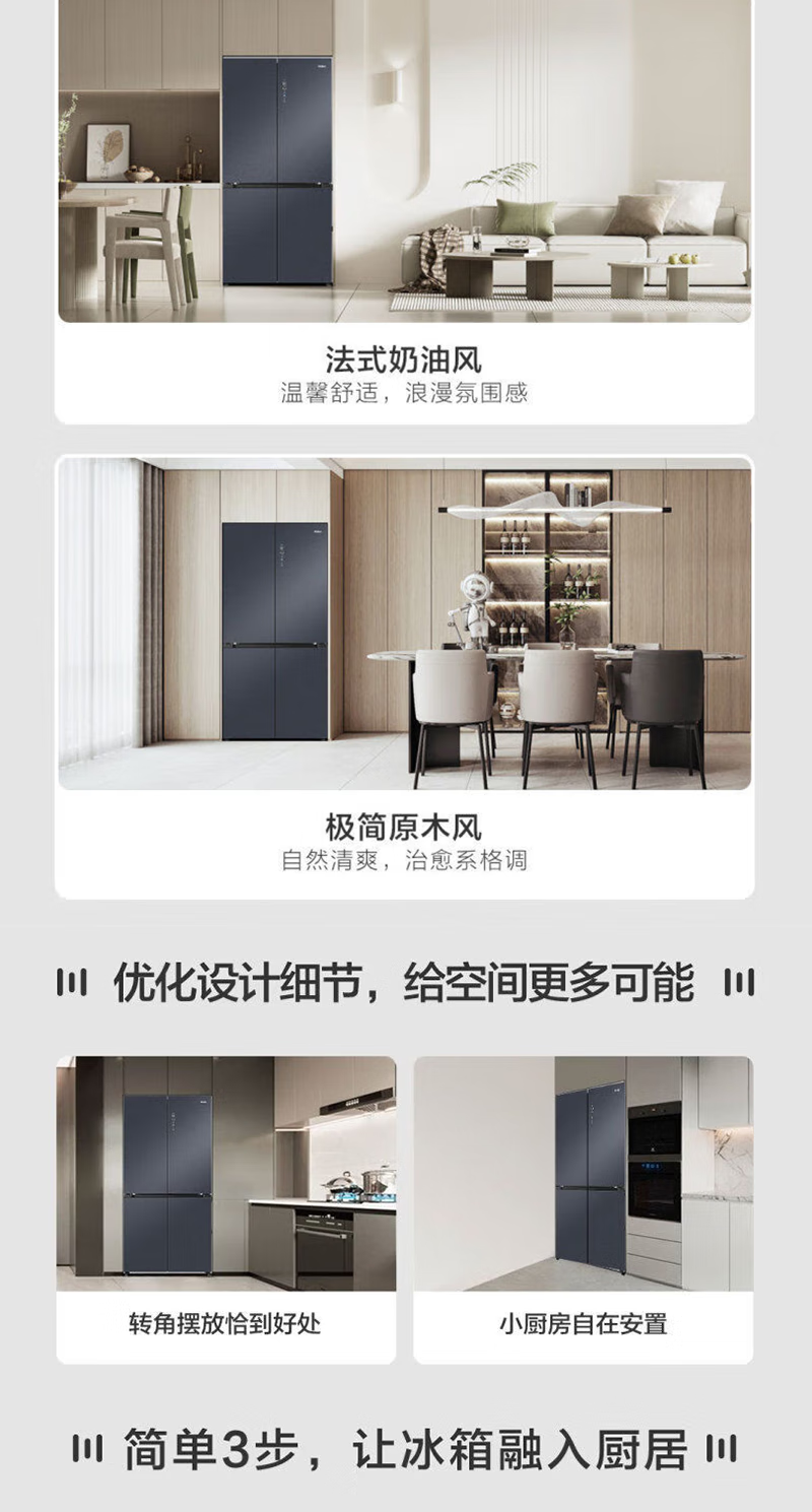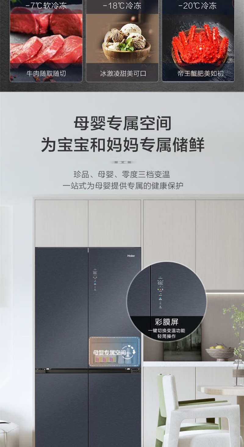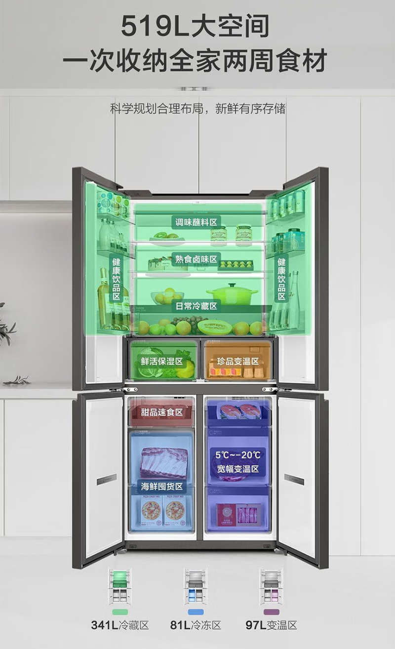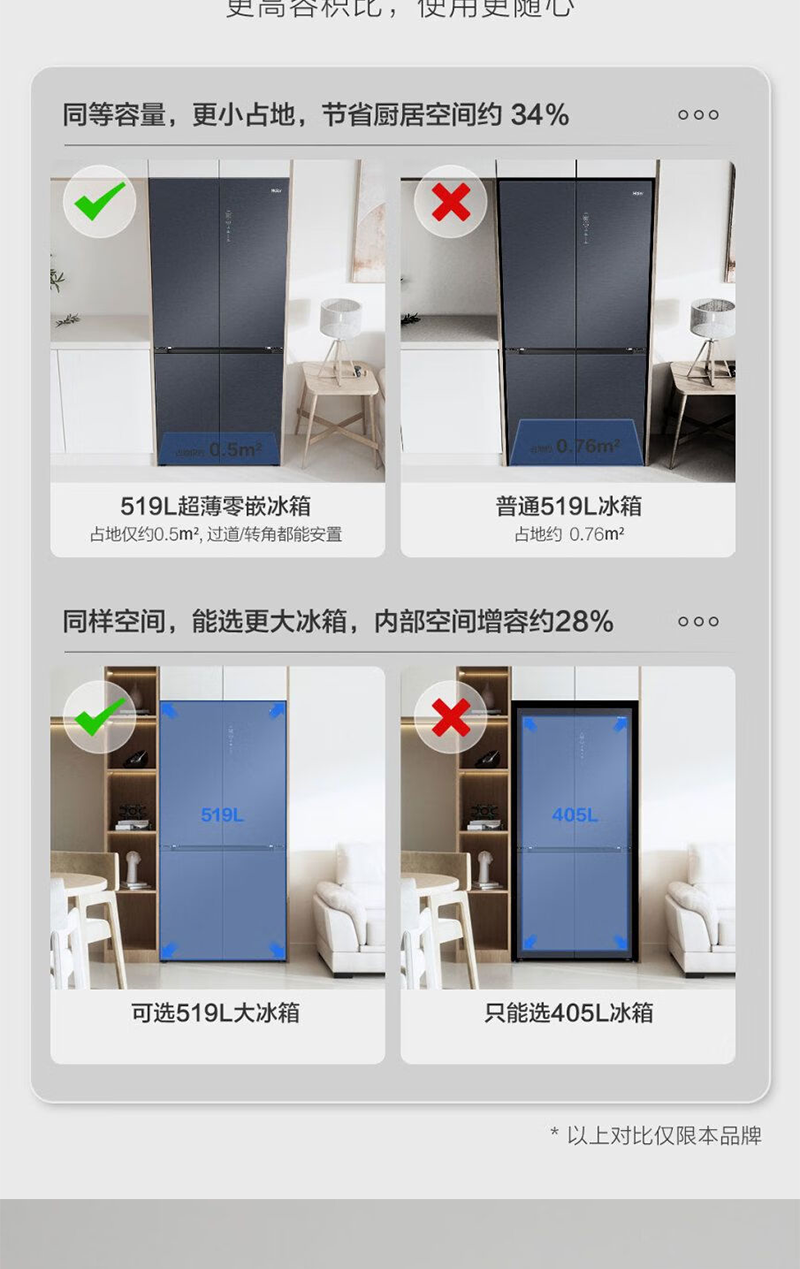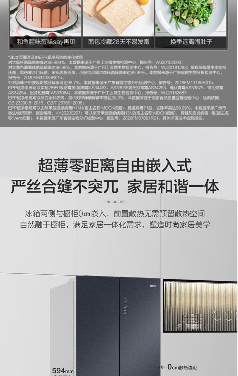 以旧换新-海尔519升全十字门空间保鲜科技零距离嵌入底部散热冰箱 EPP净味智能WIFI互联BCD-519WGHTD1BGTU1