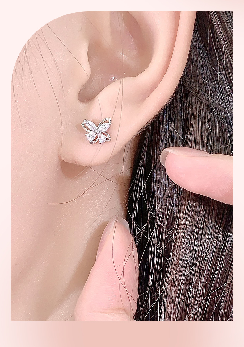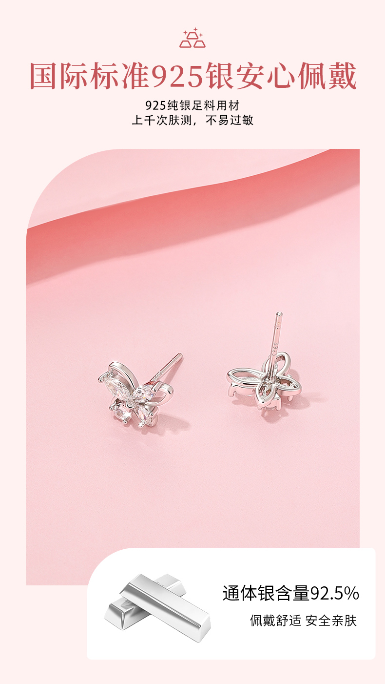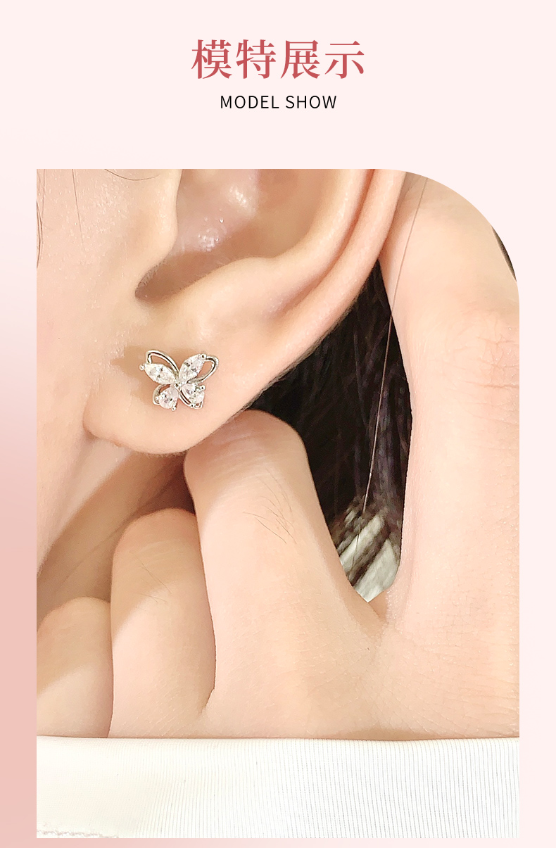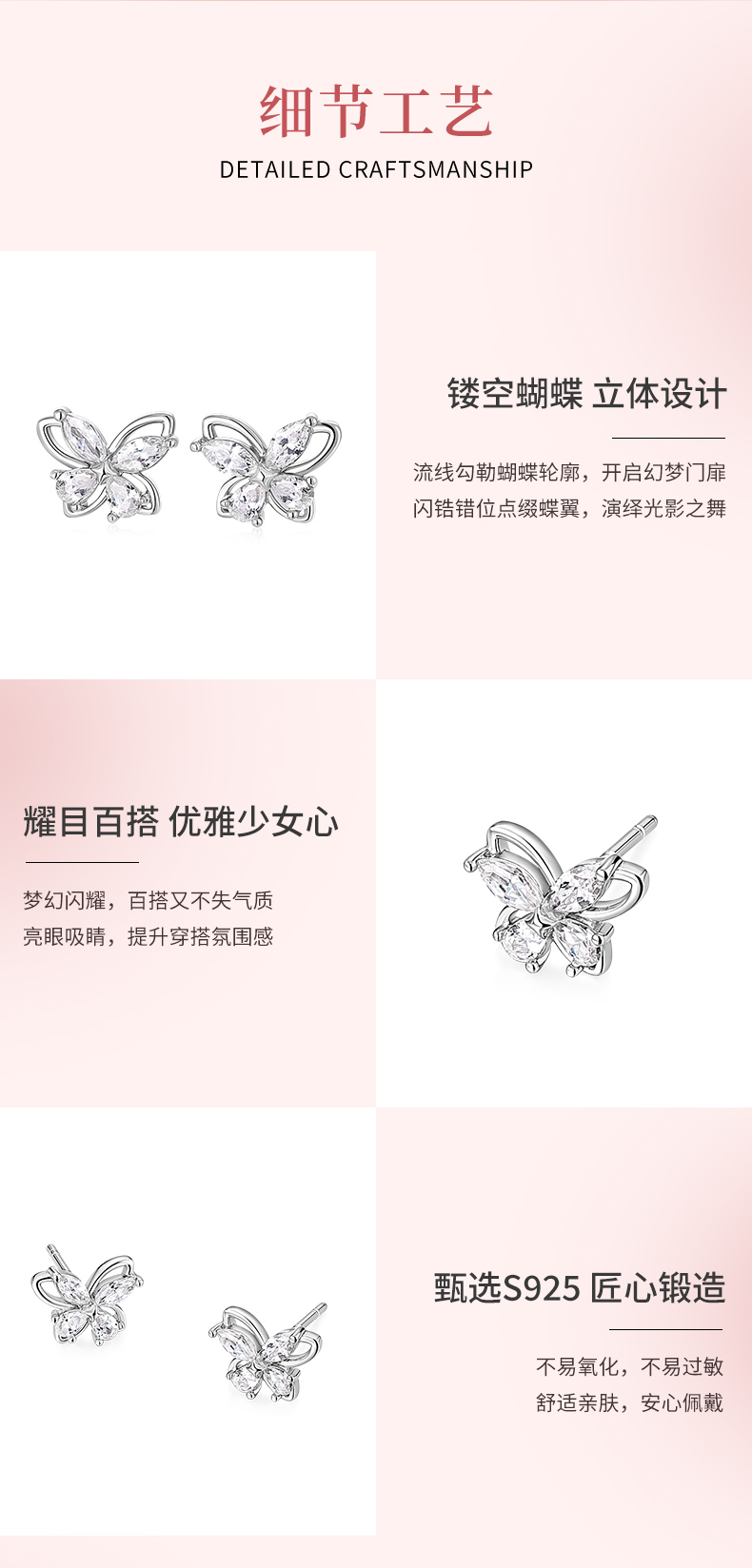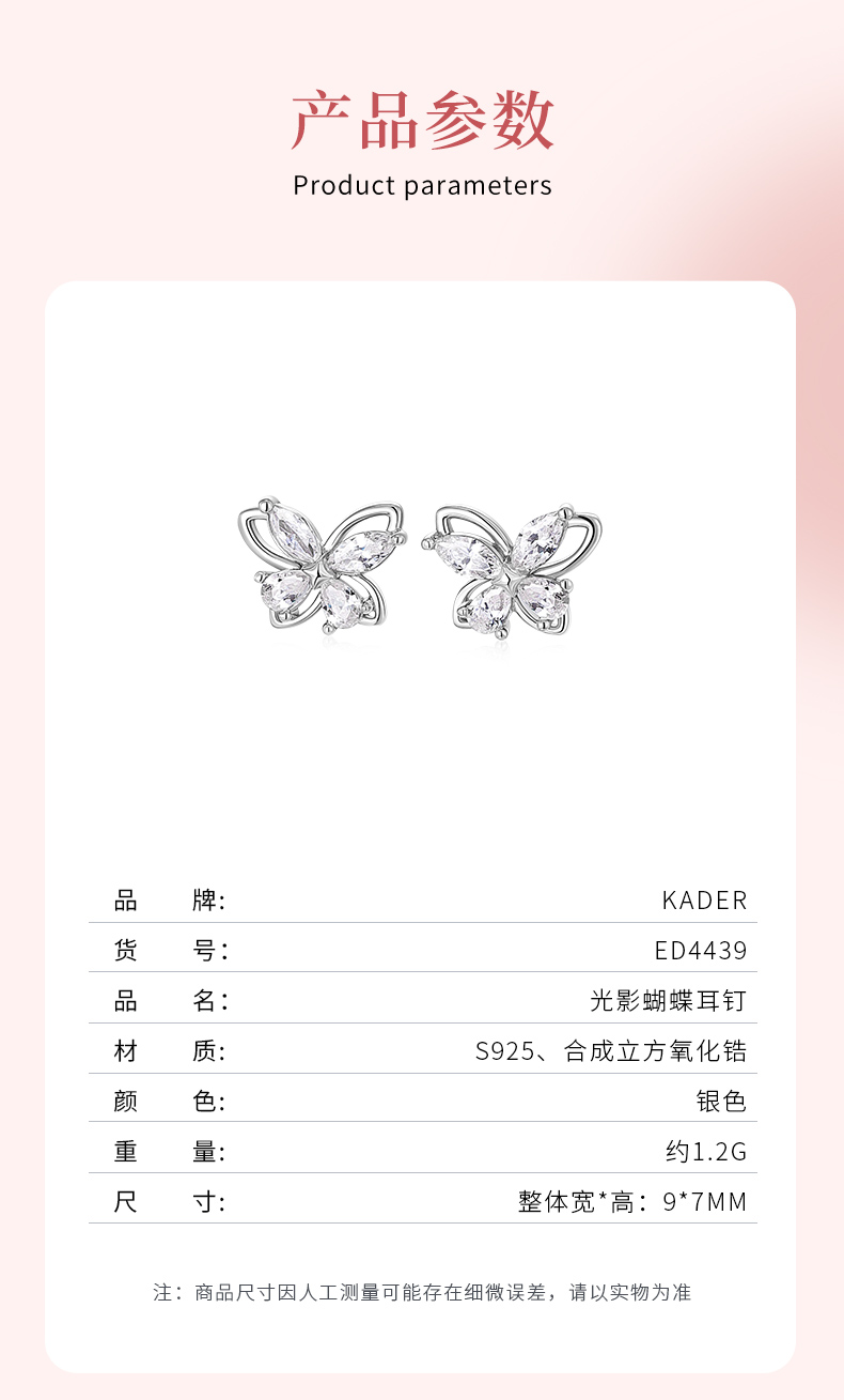 卡蒂罗/KADER 光影蝴蝶耳钉 在逃公主原创设计立体镂空满镶宝石养耳洞 闪耀璀璨闪闪蝶舞耳饰 925银 礼品礼盒