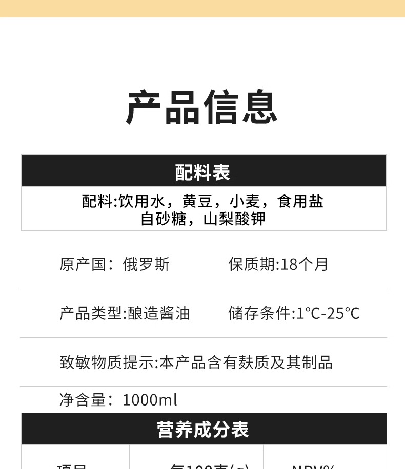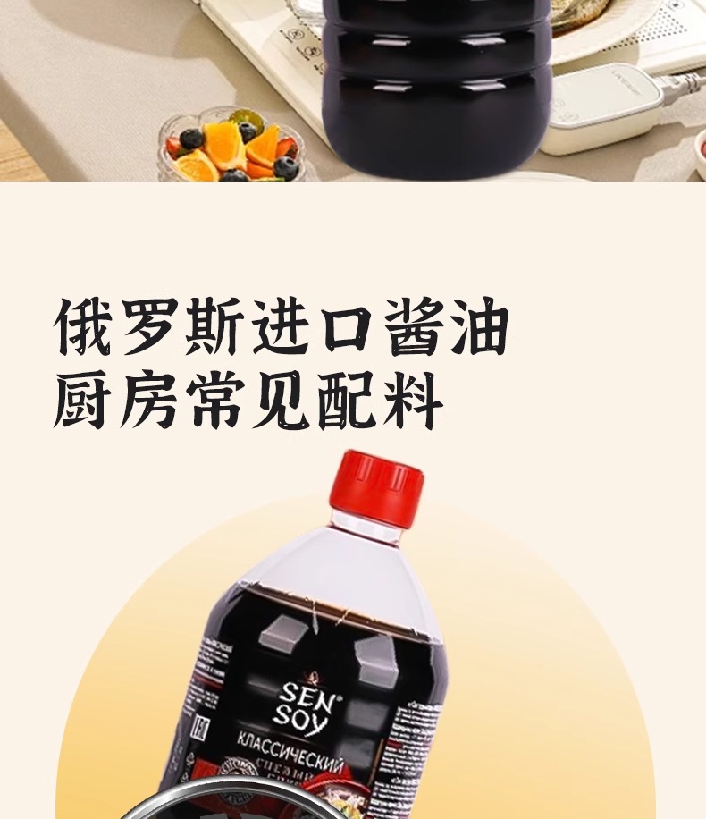 【中欧班列精选】俄罗斯原装进口希恩经典原汁酿造酱油1L大桶家庭实惠装烹饪调味料