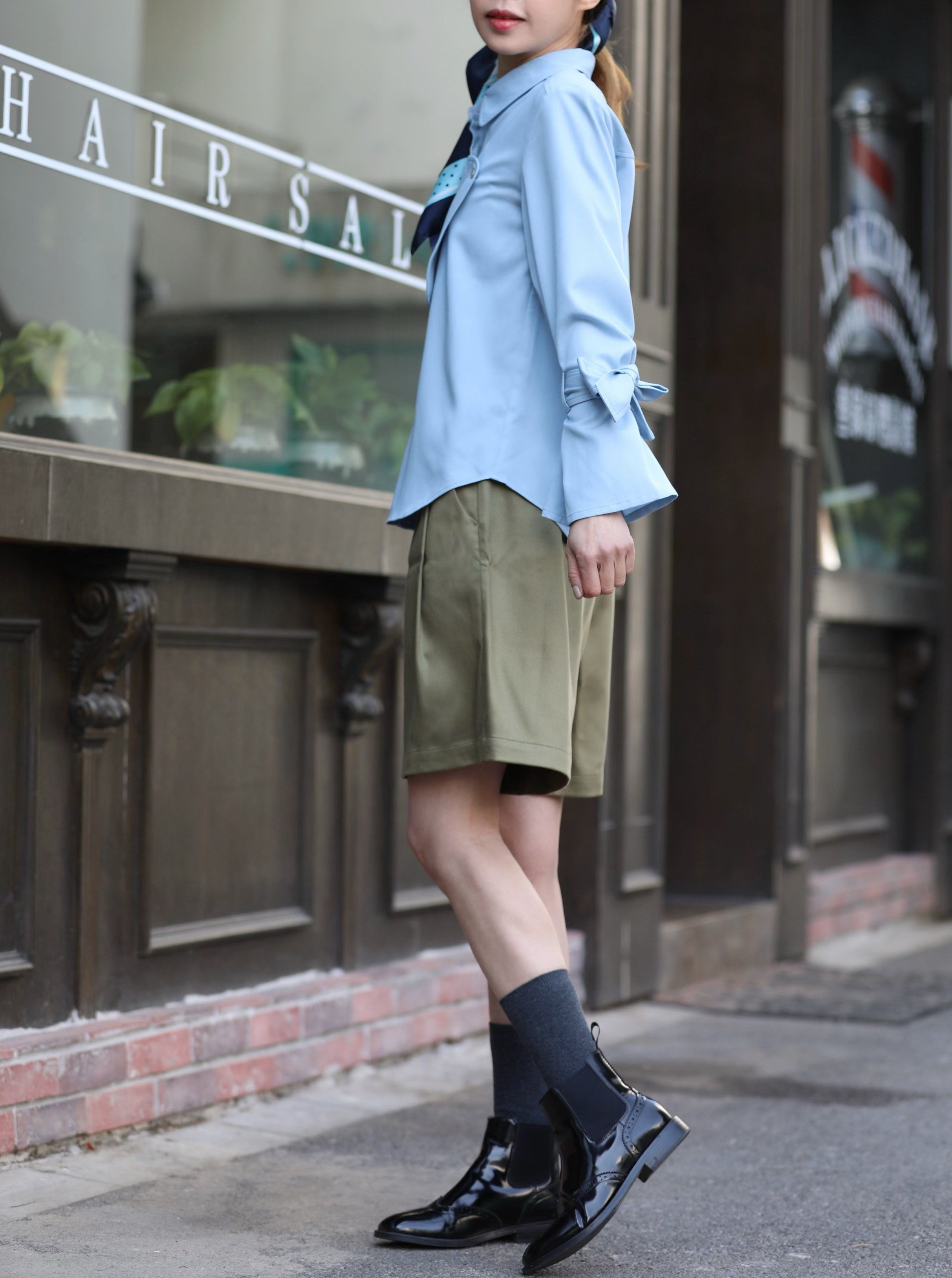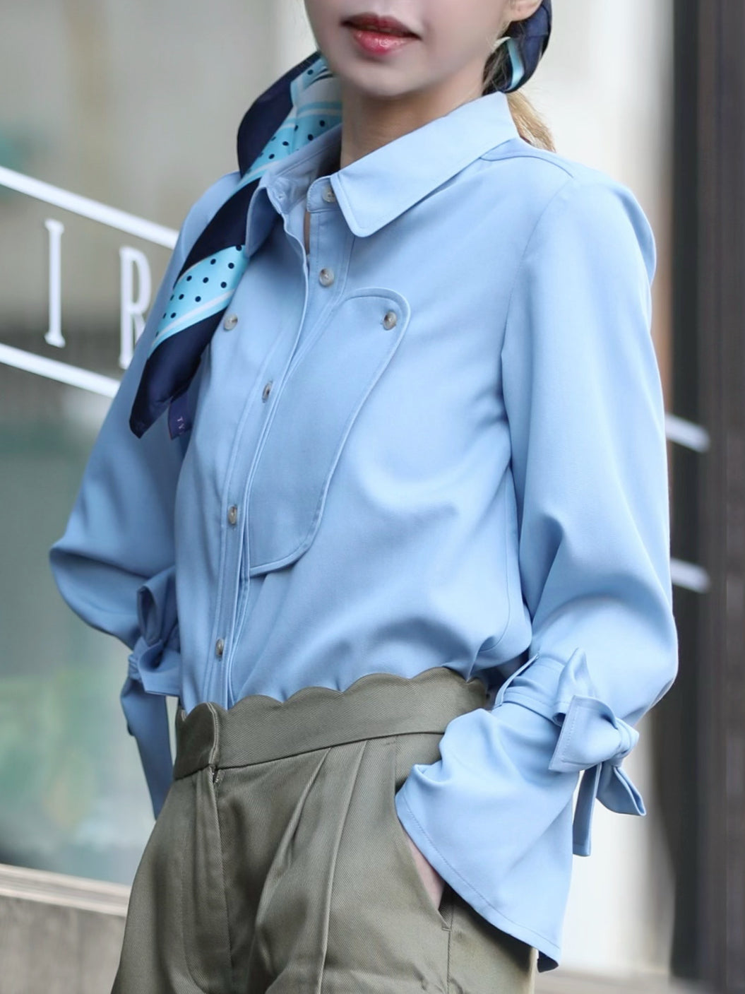 TYNVIE 领结袖衬衫-蓝色