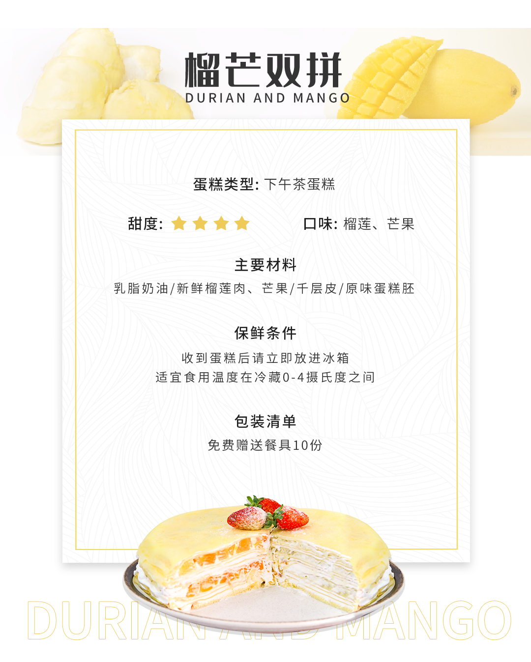 【人气榴芒双拼】-芒果酸甜萦绕舌尖,榴莲馥郁沉淀心田-下午茶款