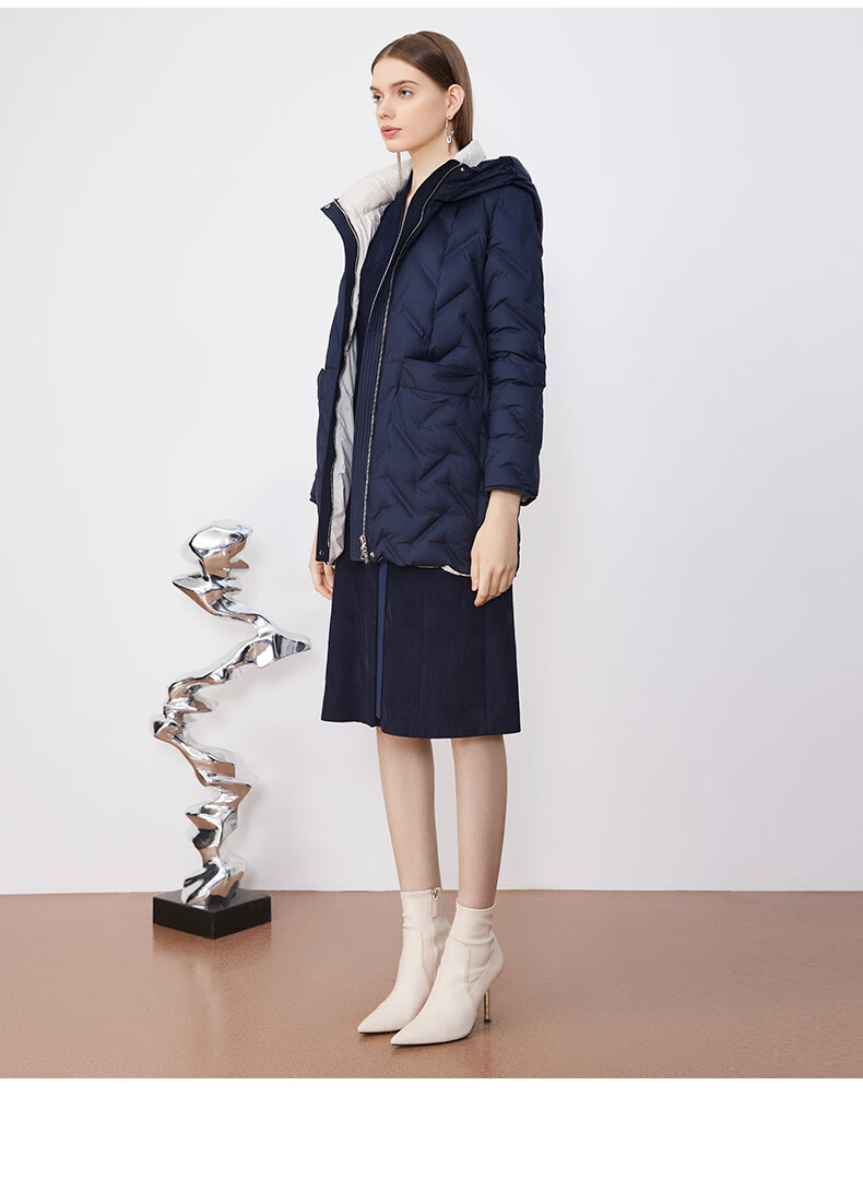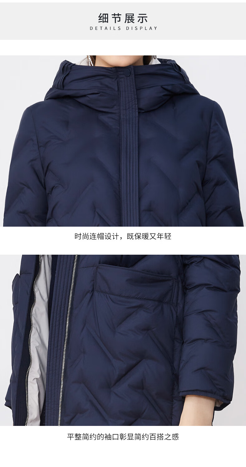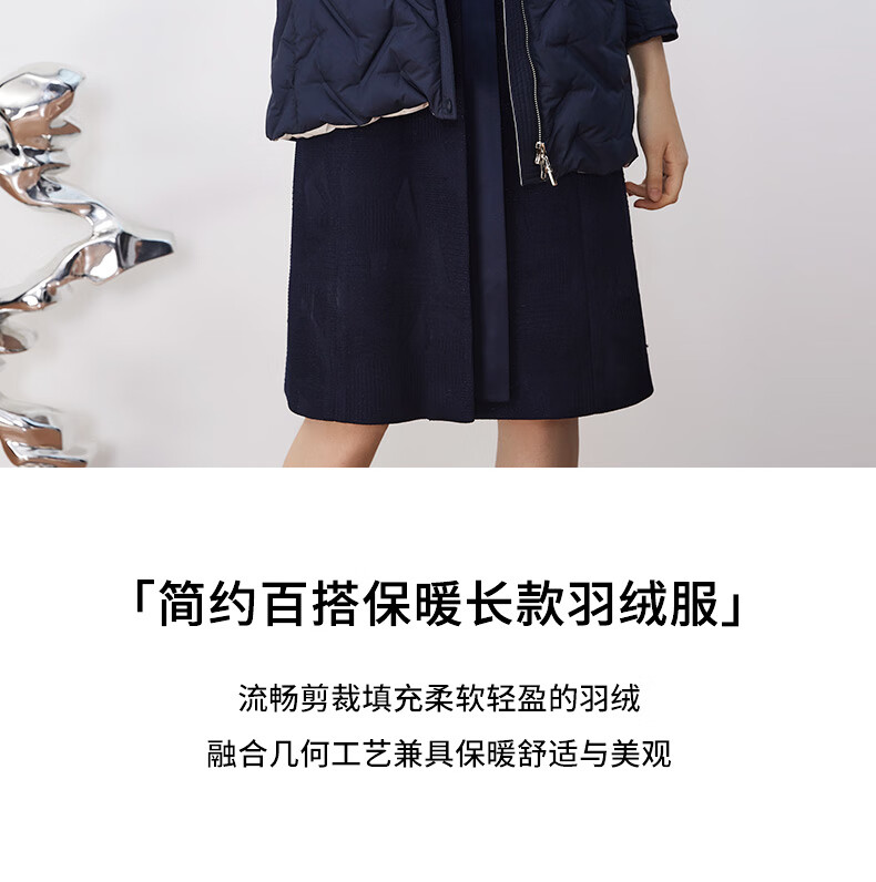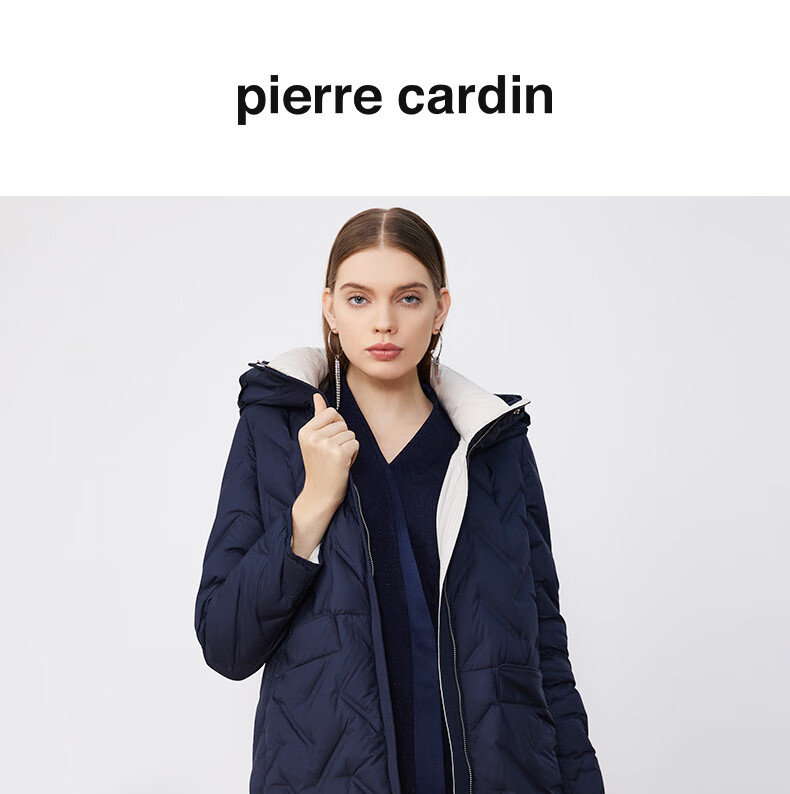 皮尔卡丹女装羽绒服冬季蓝色肌理鸭绒时尚保暖外套P3493Y2421N0