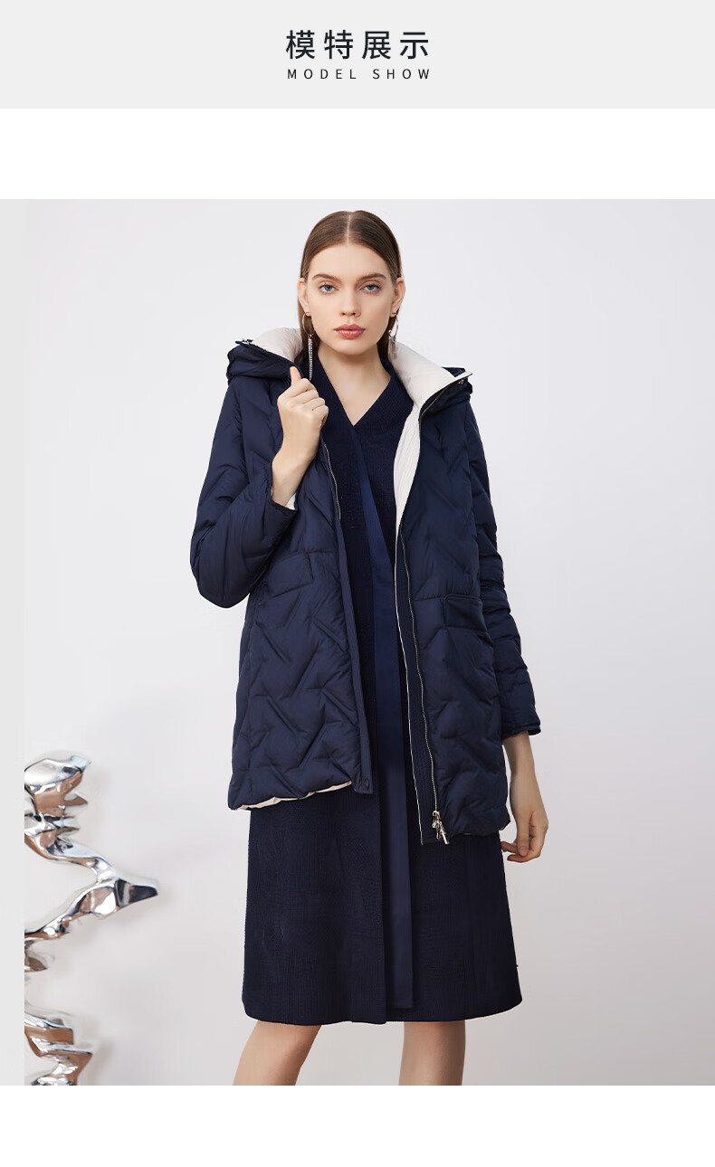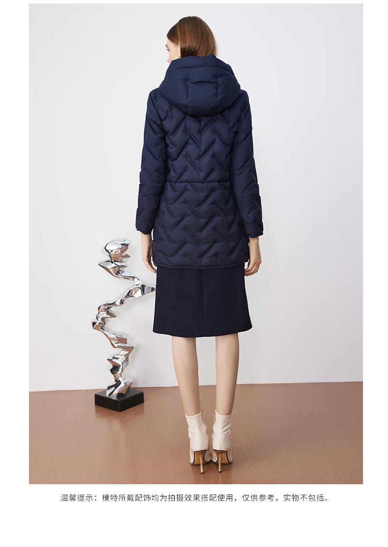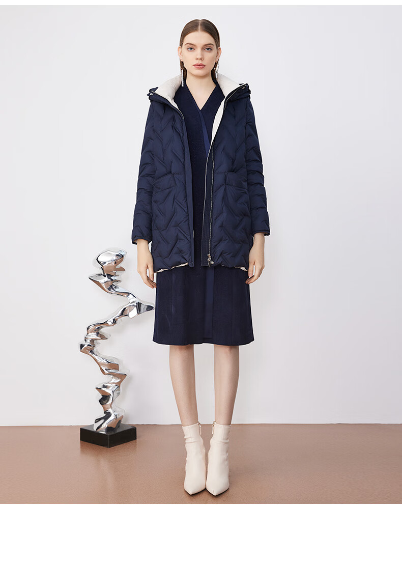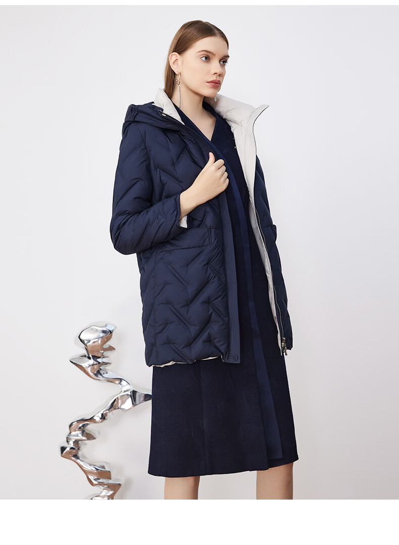 皮尔卡丹女装羽绒服冬季蓝色肌理鸭绒时尚保暖外套P3493Y2421N0