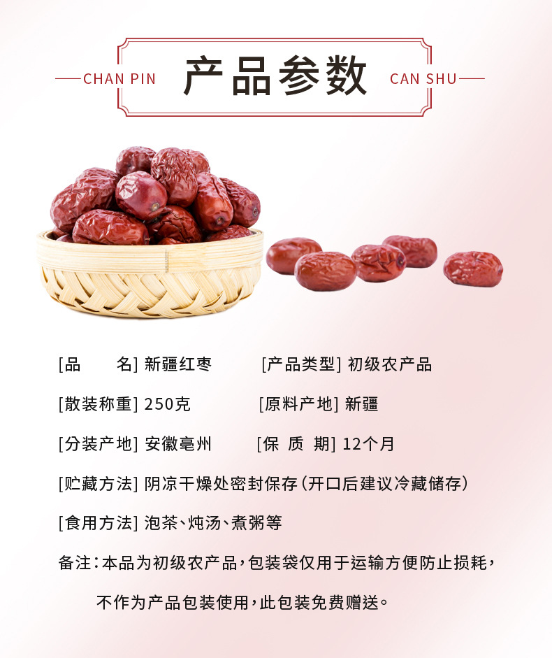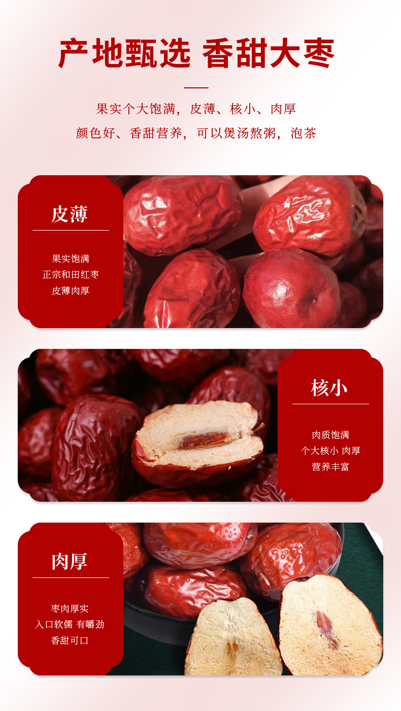 【秒杀9.9抢❗️250g🔥新疆和田红枣】新疆和田枣果形大、颗粒饱满、果肉厚实、皮薄核小,口味更甜醇,特产骏枣零食大枣,干果煲粥煮汤大红枣L