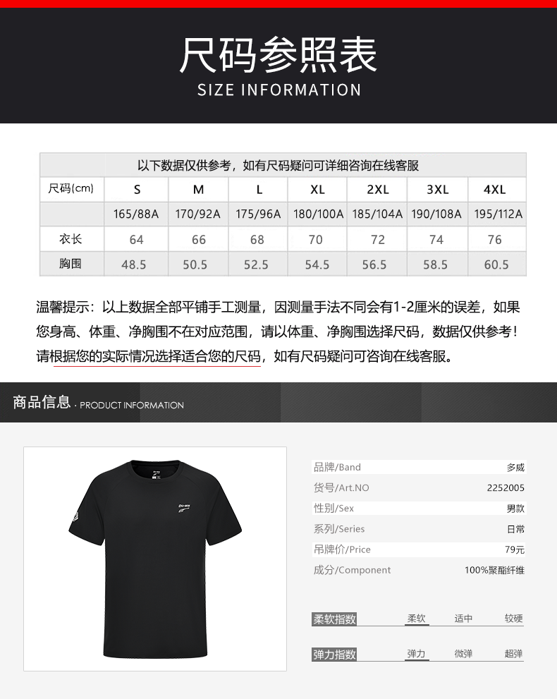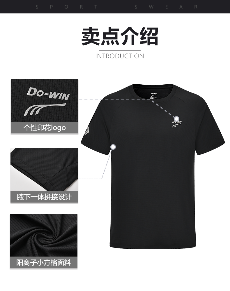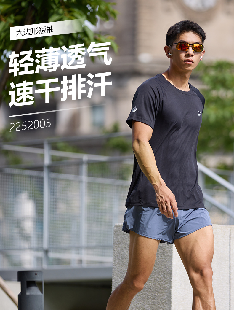 多威六边形短袖男夏季新款速干透气运动服柔软弹力T恤2252005