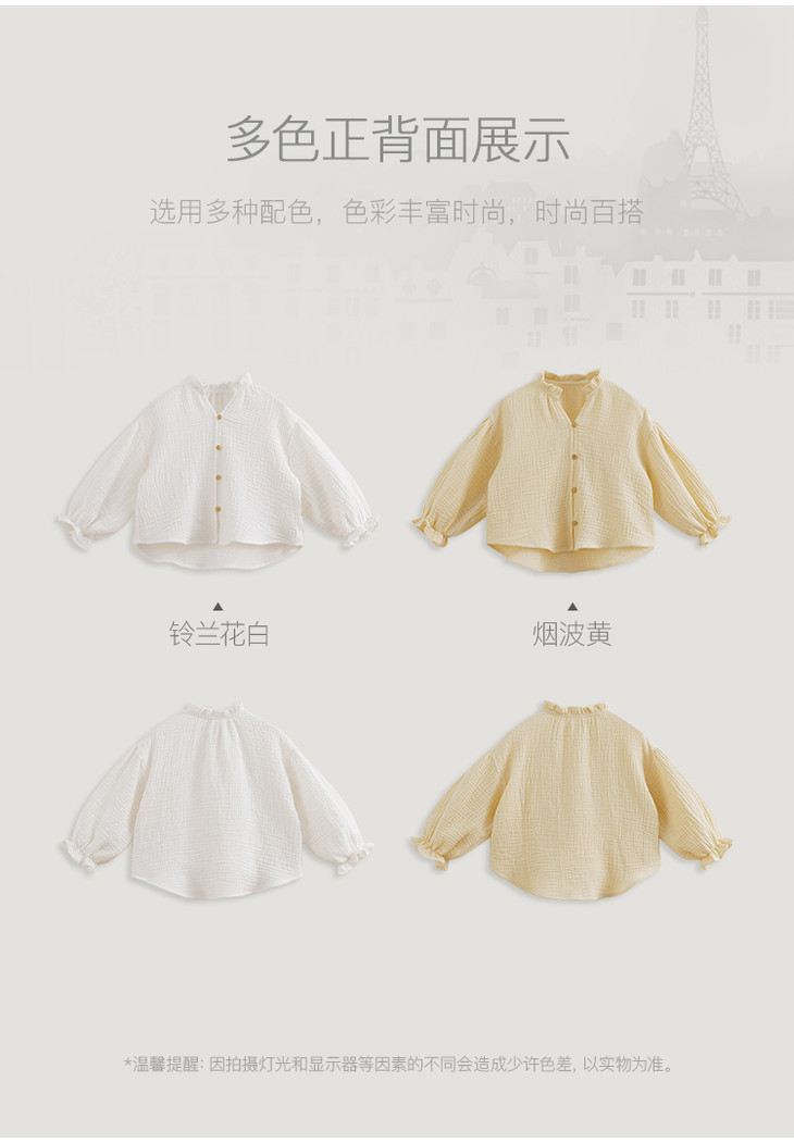 【马克珍妮 芦芙】春装新款 女童全棉花边小立领衬衫230109