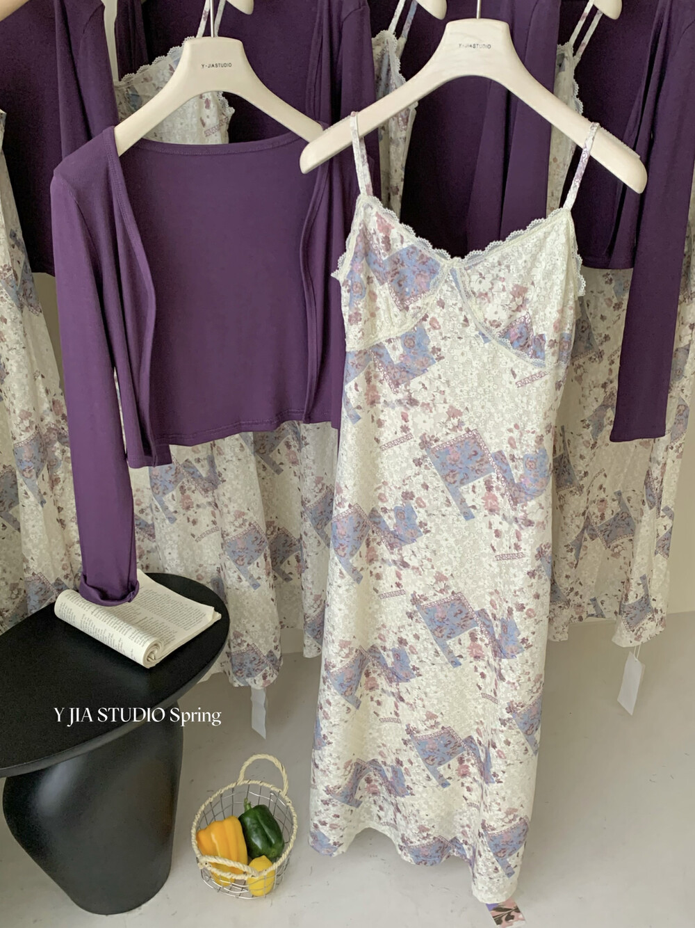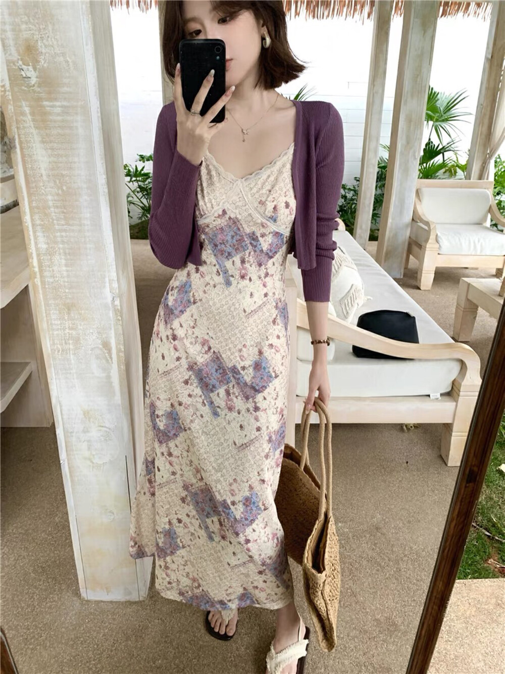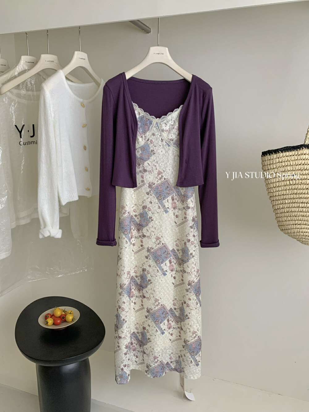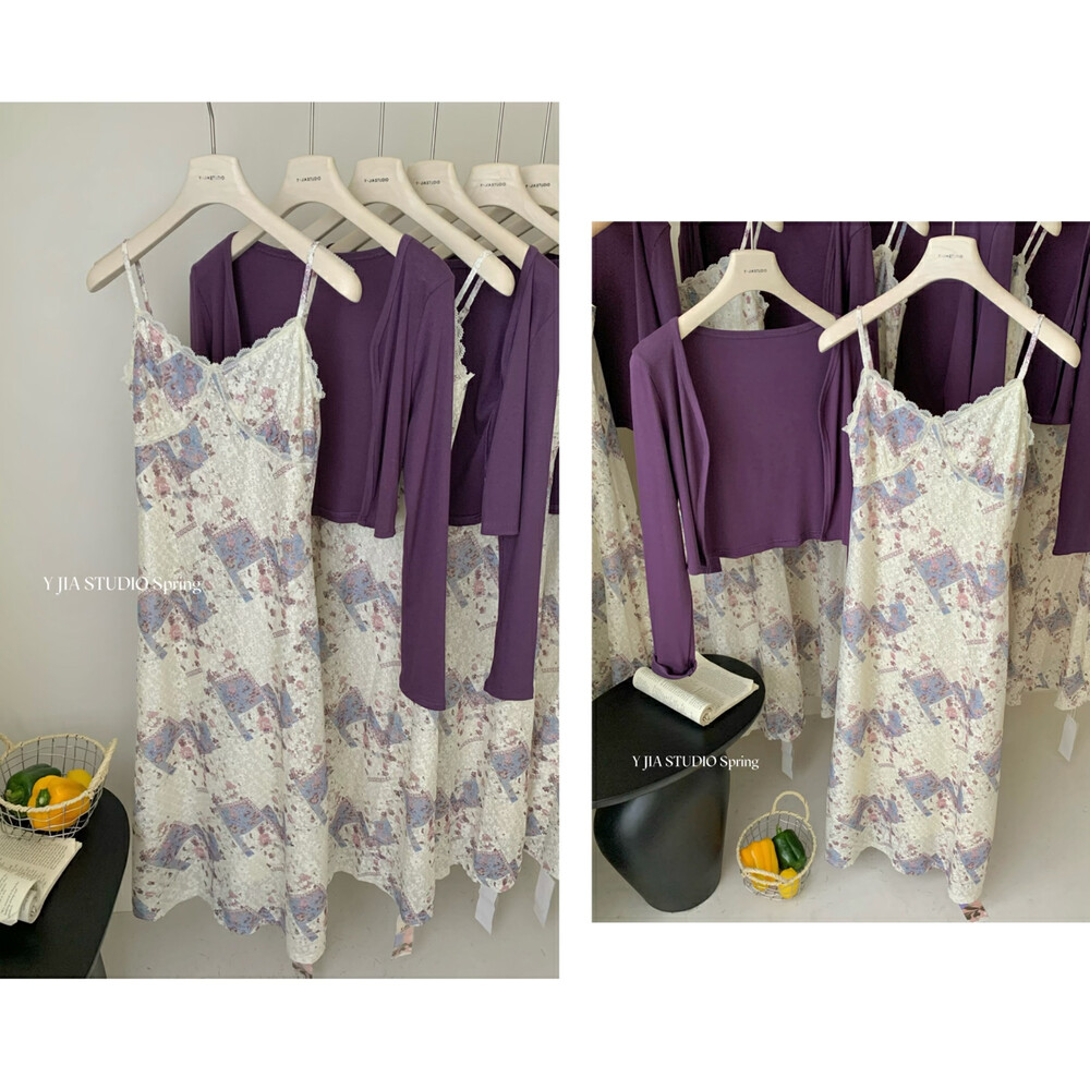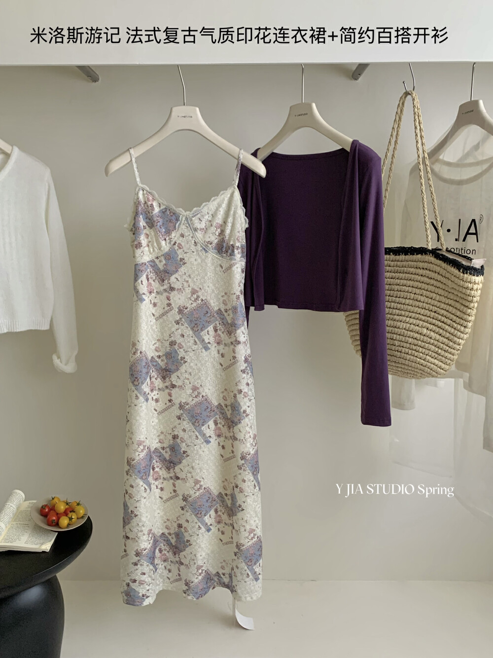 【GZ】无忧购米洛斯游记法式复古气质印花连衣裙+简约百搭开衫套装1123-5(截单后7天发货)