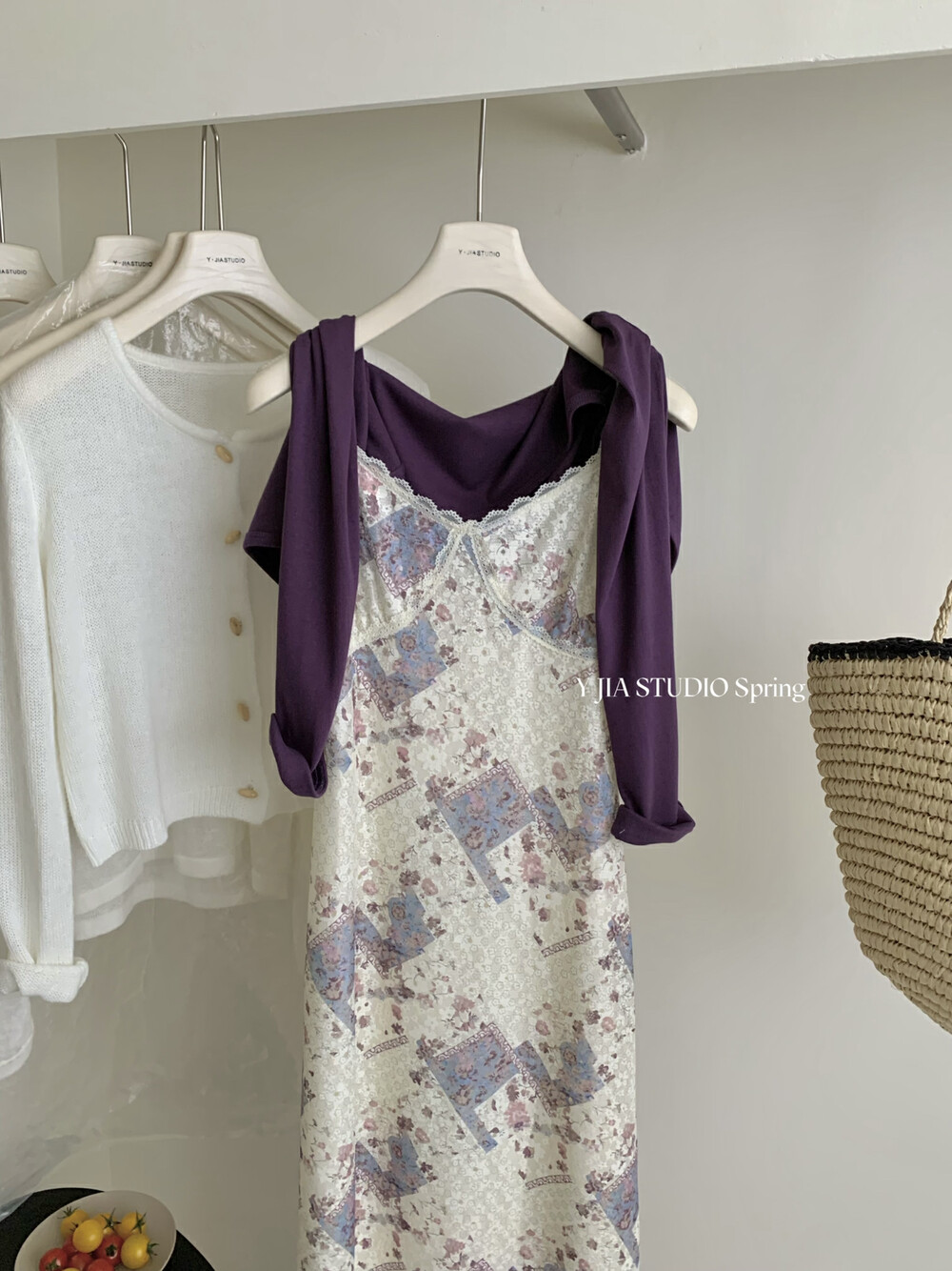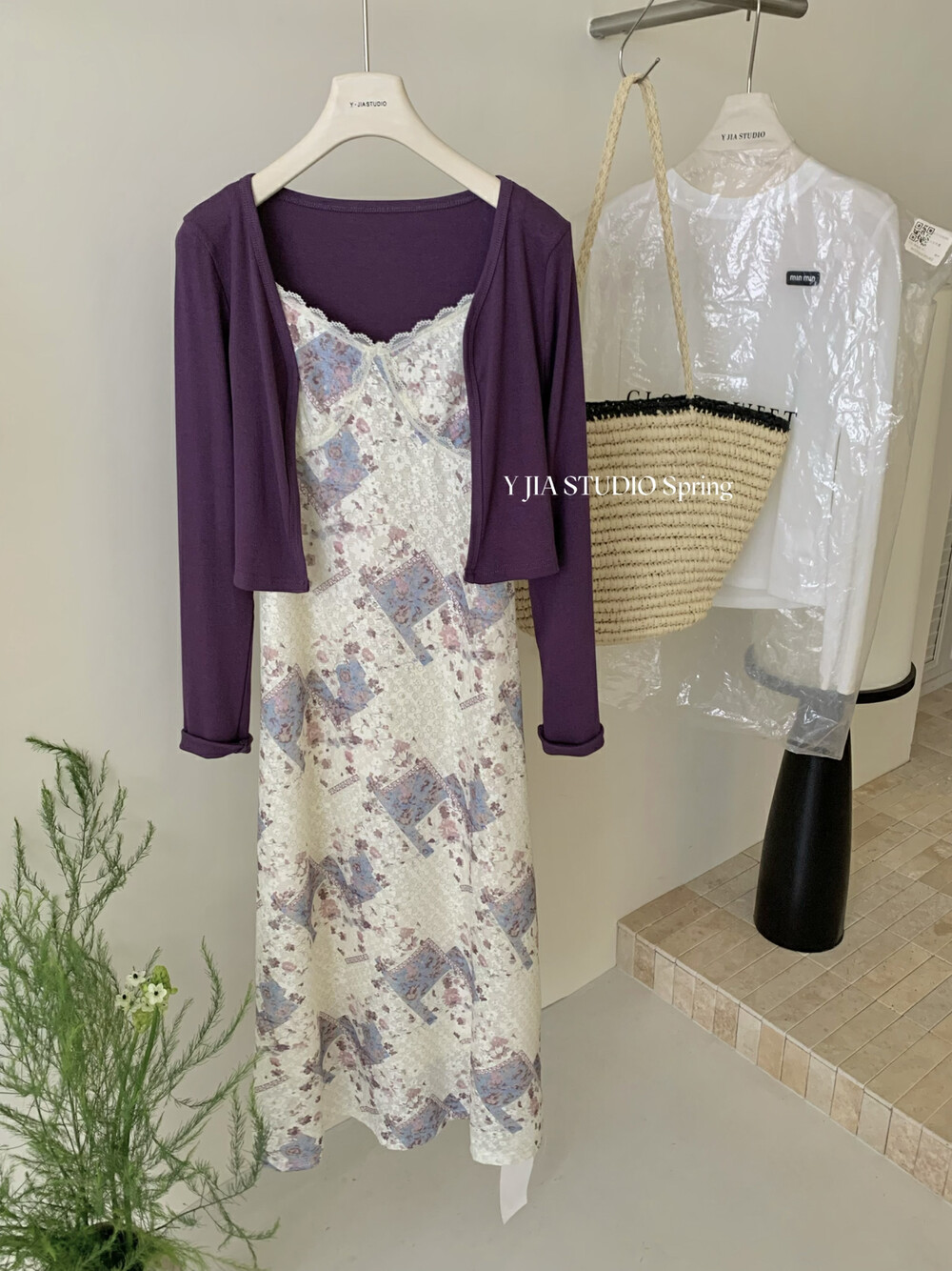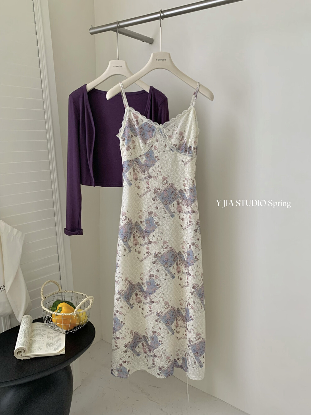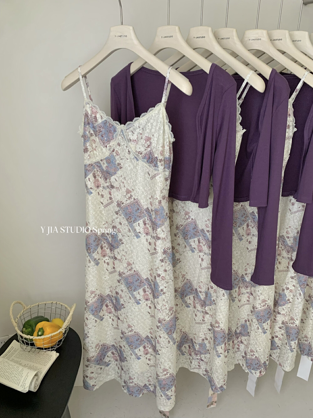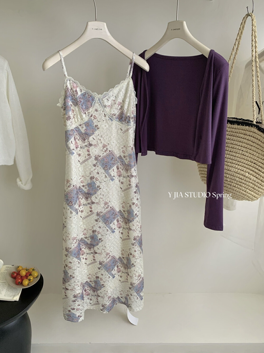 【GZ】无忧购米洛斯游记法式复古气质印花连衣裙+简约百搭开衫套装1123-5(截单后7天发货)