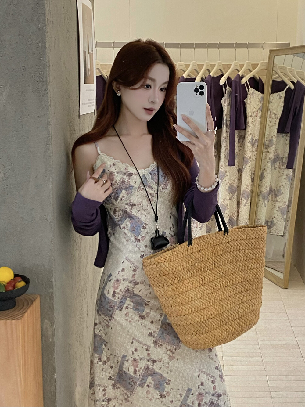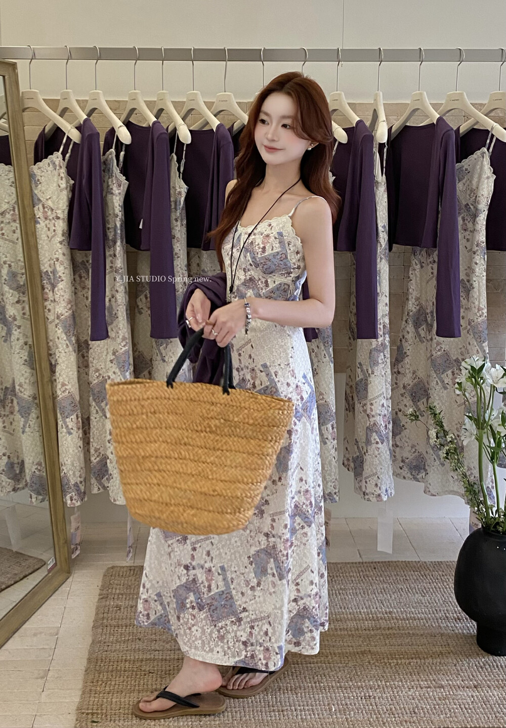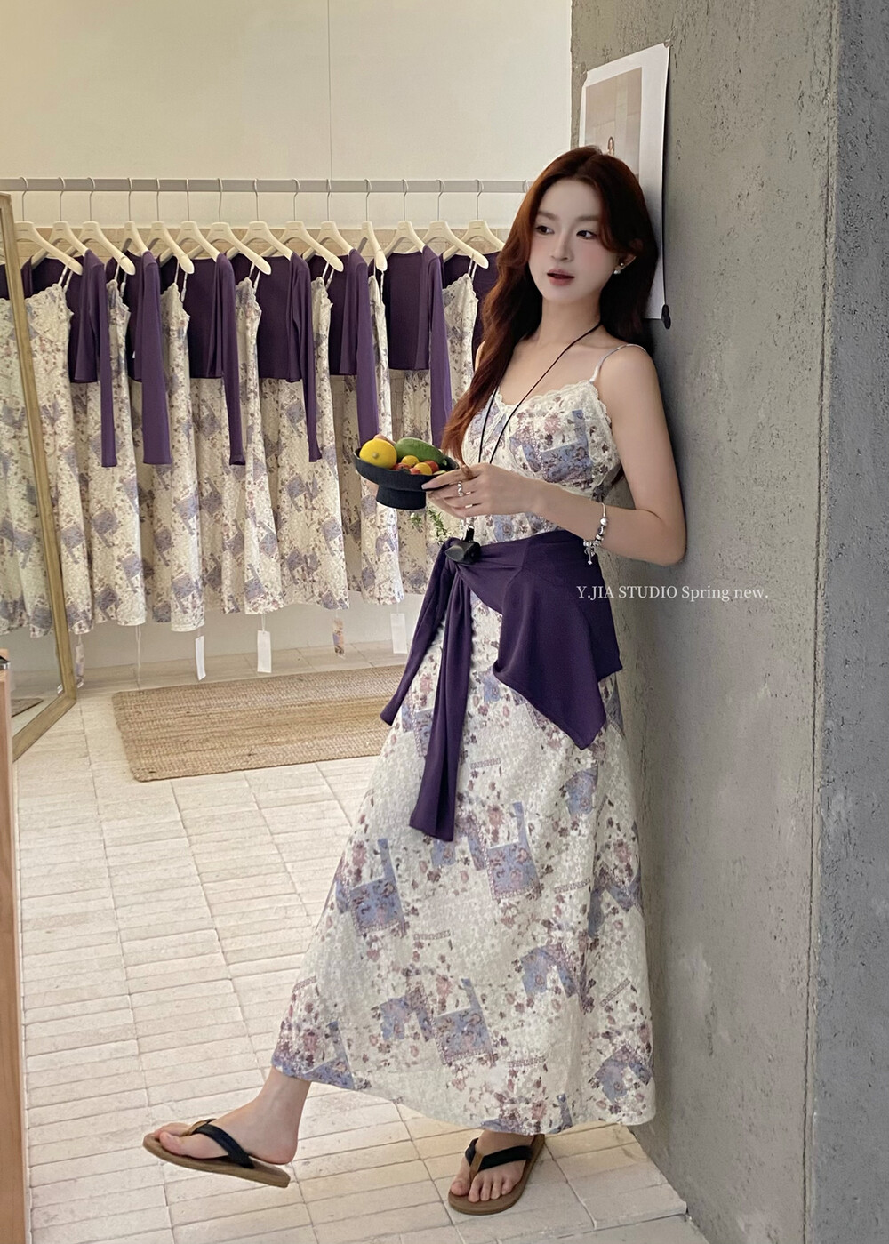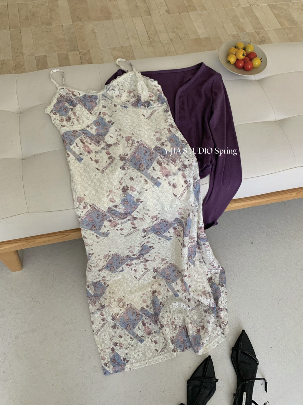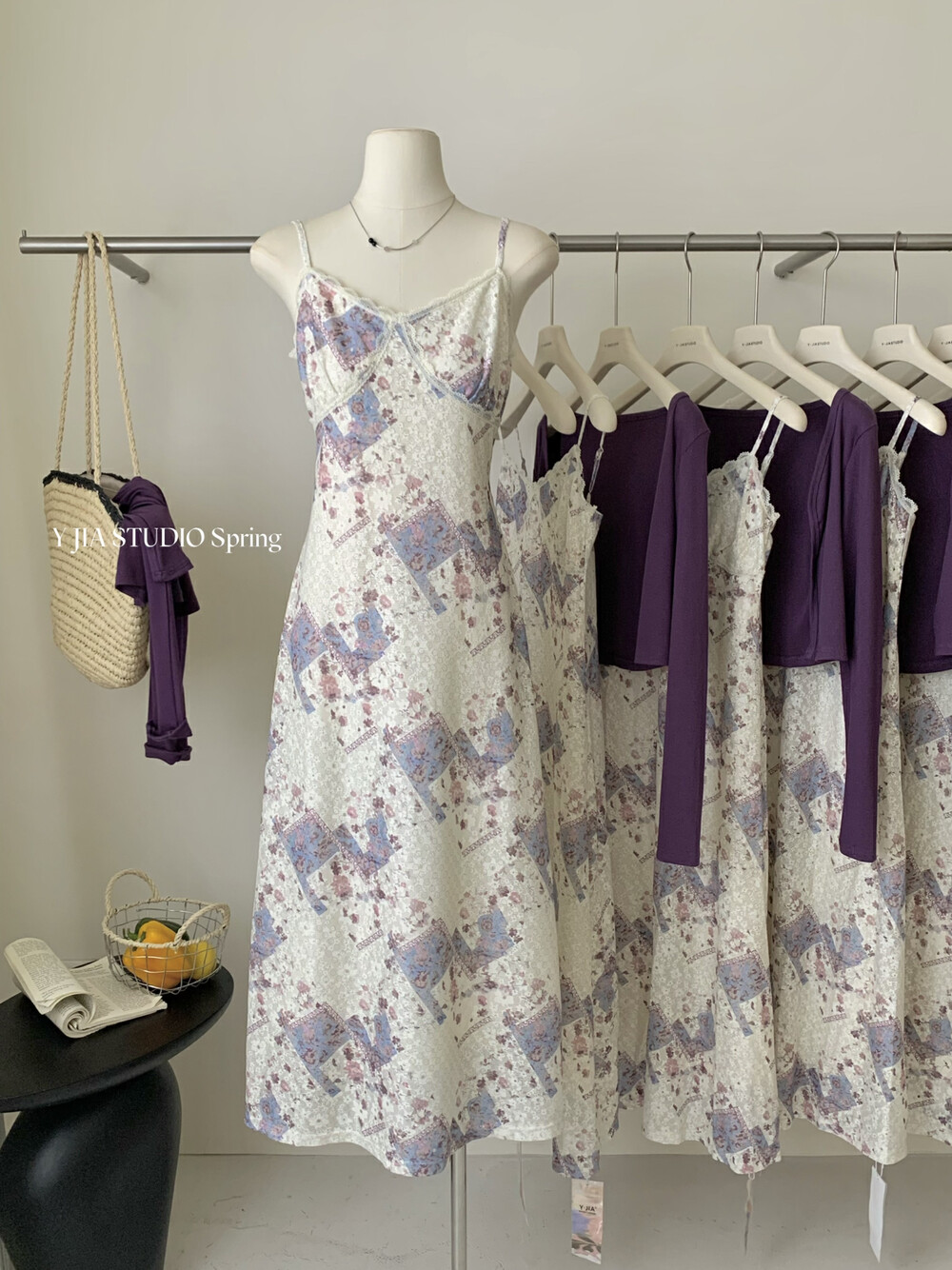 【GZ】无忧购米洛斯游记法式复古气质印花连衣裙+简约百搭开衫套装1123-5(截单后7天发货)