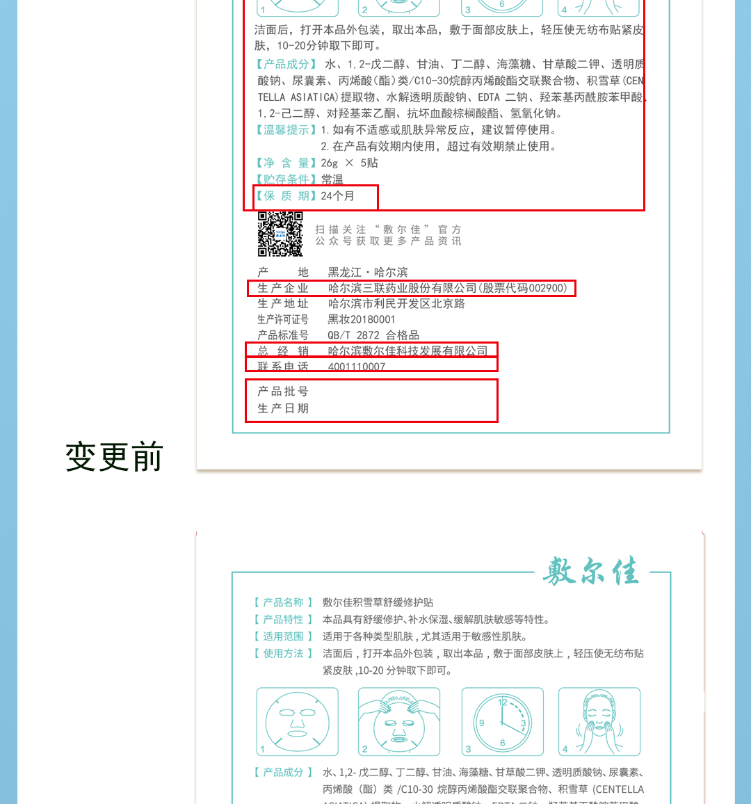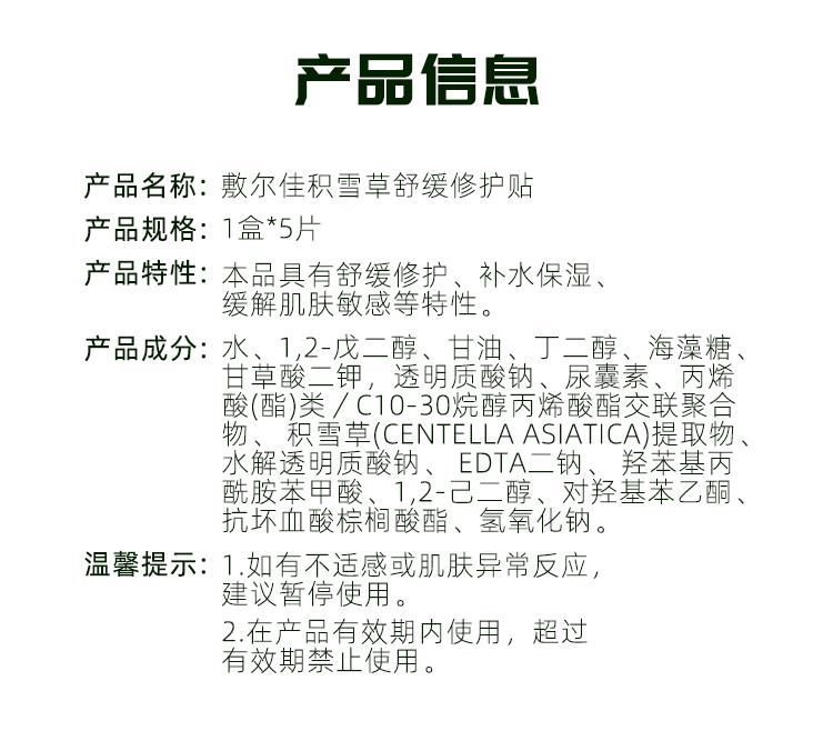 敷尔佳积雪草舒缓面膜(可批发,箱起详询客服)