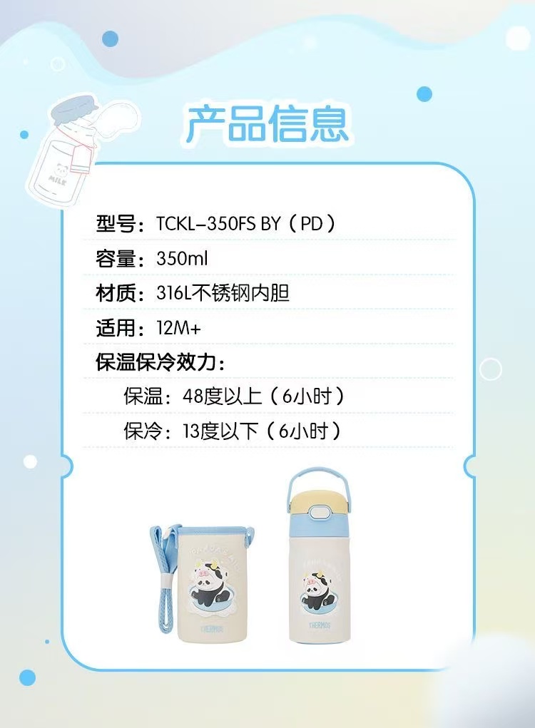 膳魔师熊猫乐园吸管保温杯350ml蓝色